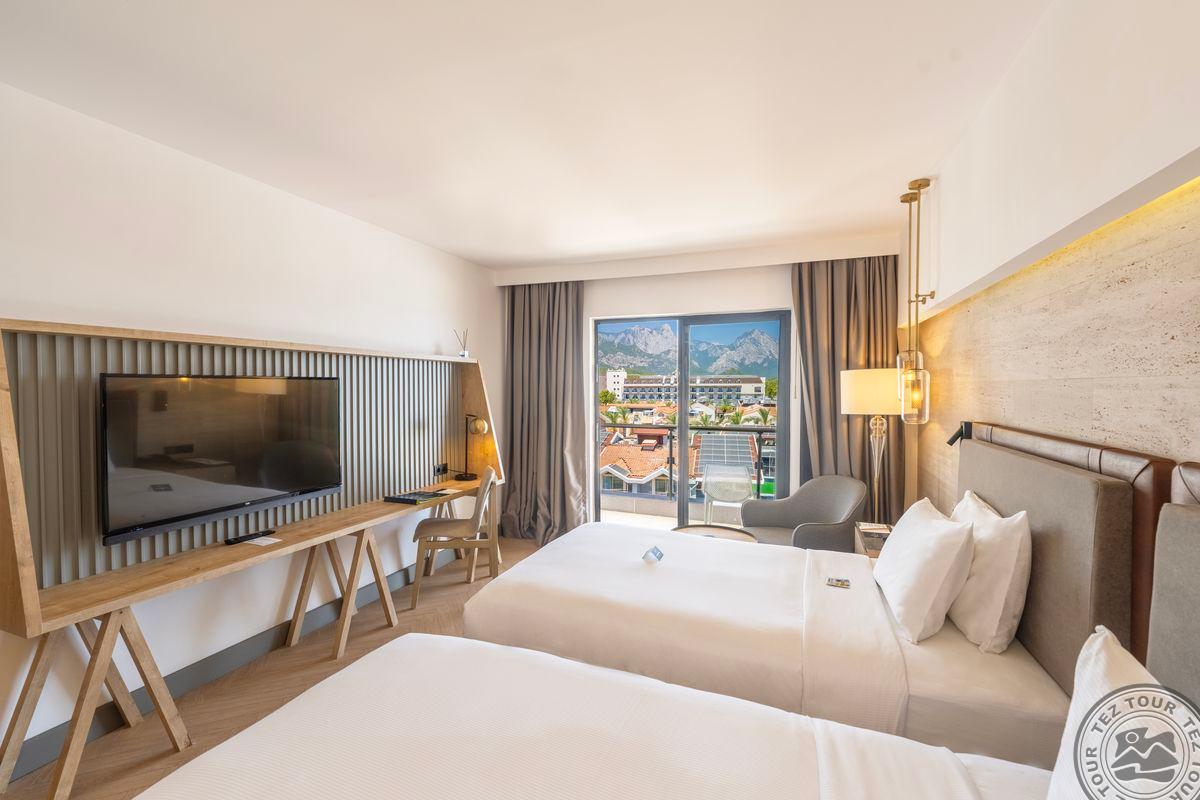 Kemero centre, moderniai ir jaukiai įrengtas viešbutis su kompaktiška teritorija. Labai gražios visos erdvės, ypač maisto vagonėlių. Sakyčiau, kad labiau skirtas poroms, bet jeigu atvyksti su mažais vaikais, tai jie turi vežimėlius, lovytę, puodukus ir specialaus maisto kūdikiams. Yra kelios vandens čiuožyklos. Yra kavos namai, su gerai gaminama kava. Lobby baras veikia 24h. Yra geri importiniai gėrimai. Yra naktinis klubas iki 2h. Kiekvieną dieną mini baras papildomas. Gali sujungti du standartus. 5 a la carte ir visi mokami. Labai kokybiškas variantas.