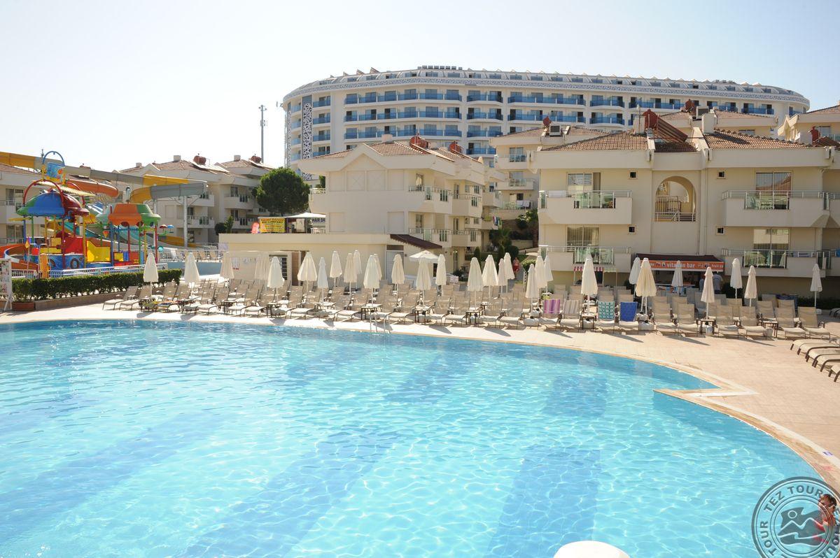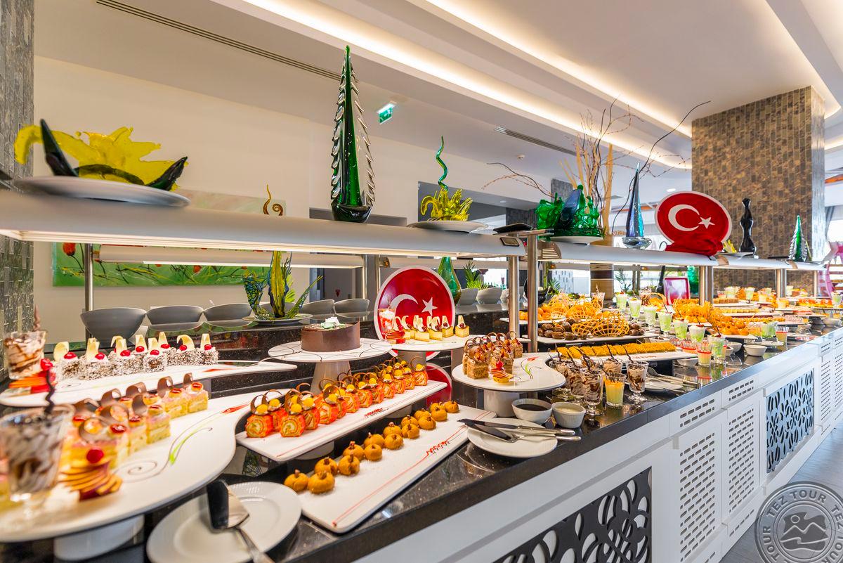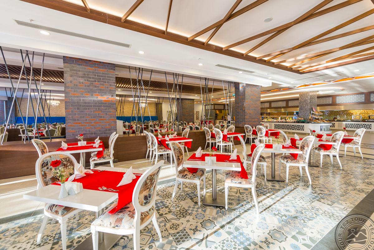 • a la carte restoranai: 3 (turkiškas, žuvies - pagal išankstinę rezervaciją, visos viešnagės metu galima nemokamai apsilankyti kiekviename restorane po 1 kartą)