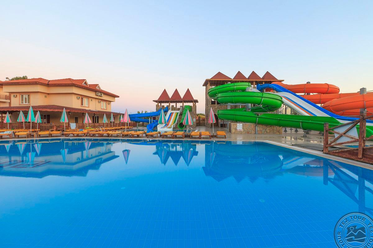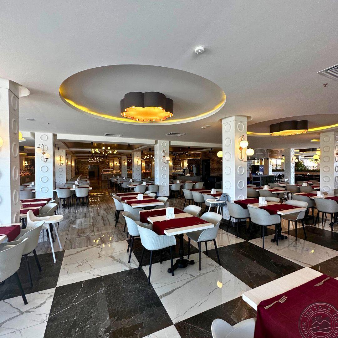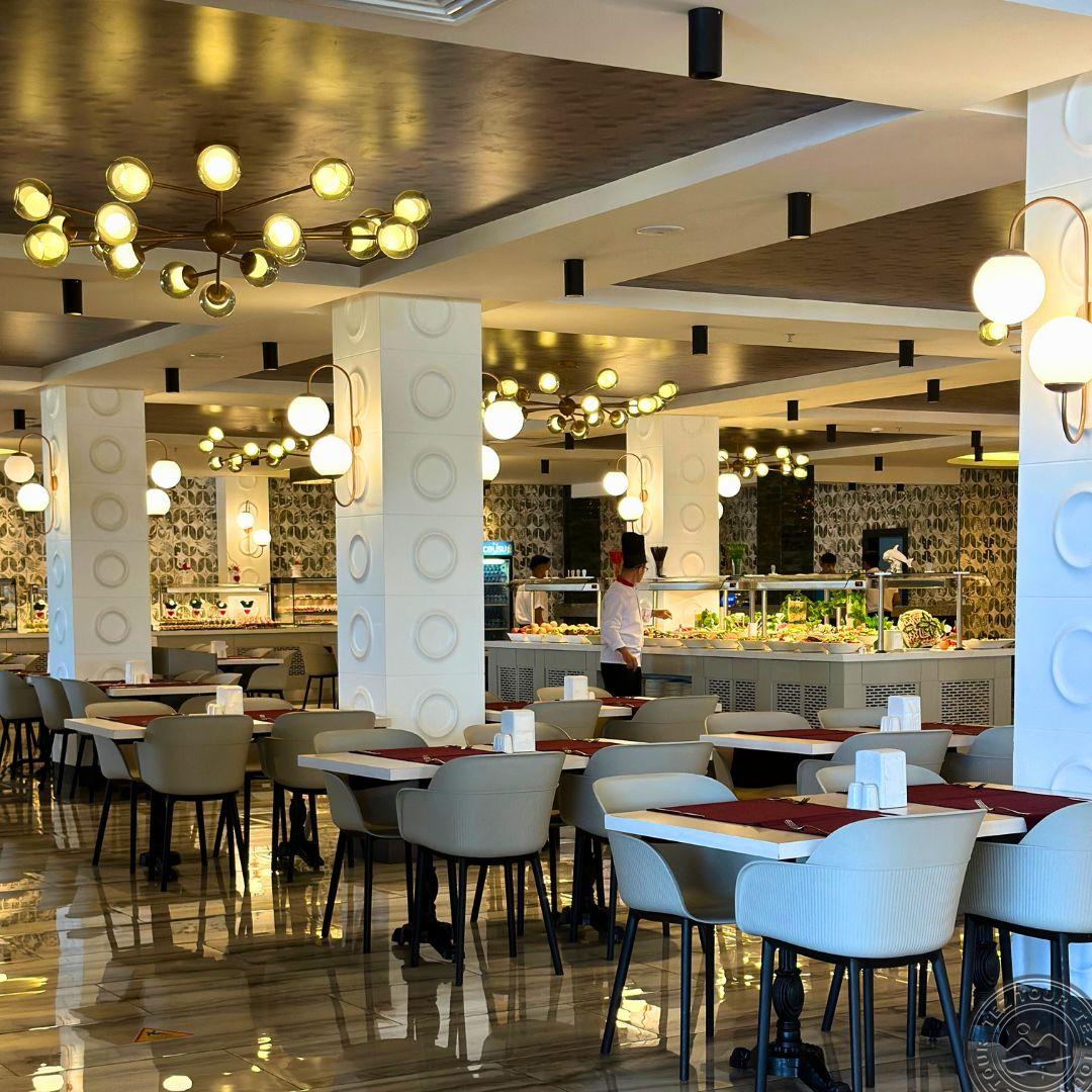Viešbučio teritorijoje jautiesi kaip kokiam turguje. Pilna prekybininkų, kurie turėtų būti ne centrinėje viešbučio dalyje. Nemokamas alkoholis tik alus Efes ir vynas (baltas/raufonas). Visa kita už papildomą mokestį. Nelabai patenkama į viskas įskaičiuota kategorija.