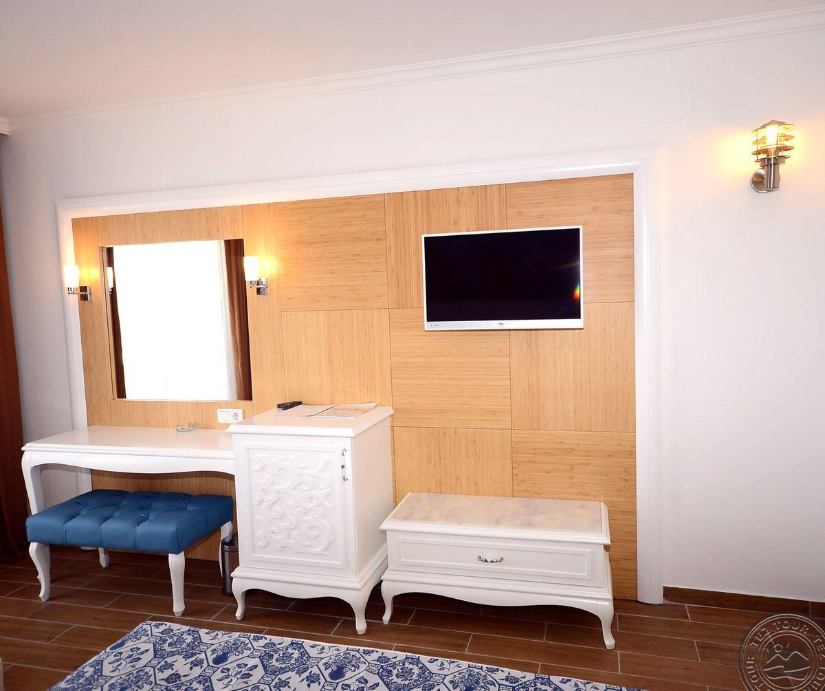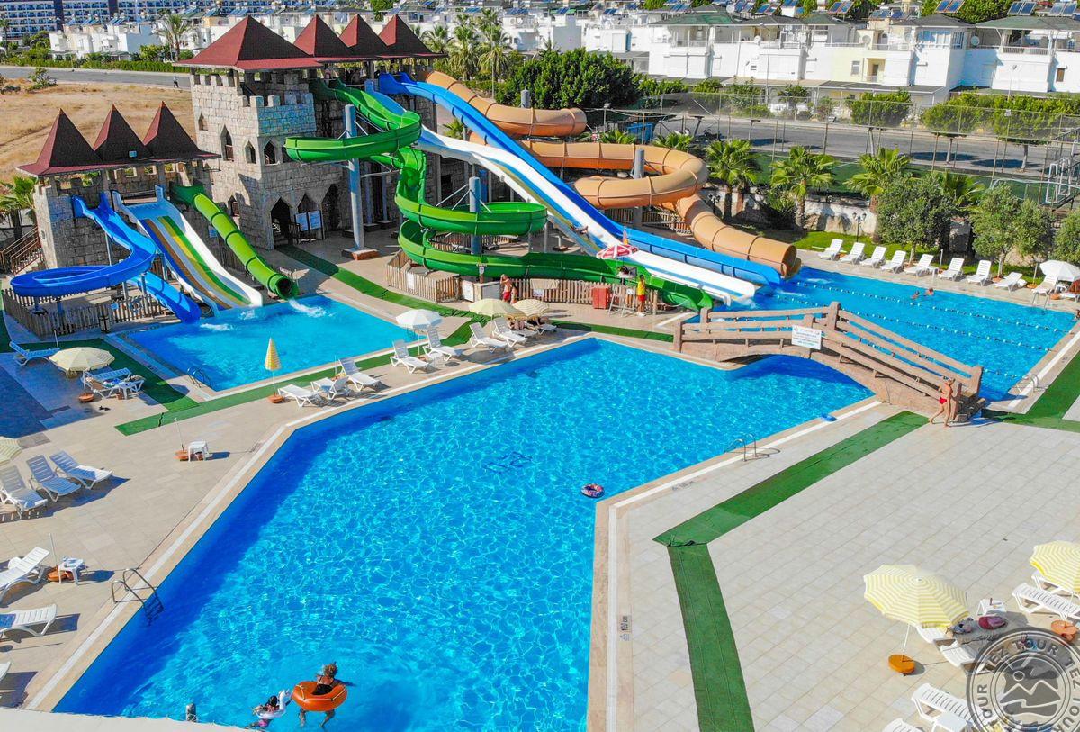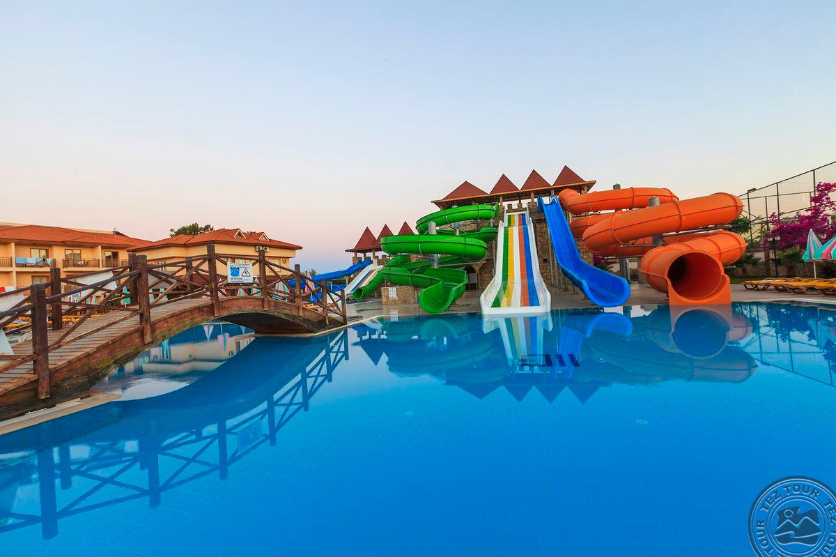 Viešbučio teritorijoje jautiesi kaip kokiam turguje. Pilna prekybininkų, kurie turėtų būti ne centrinėje viešbučio dalyje. Nemokamas alkoholis tik alus Efes ir vynas (baltas/raufonas). Visa kita už papildomą mokestį. Nelabai patenkama į viskas įskaičiuota kategorija.