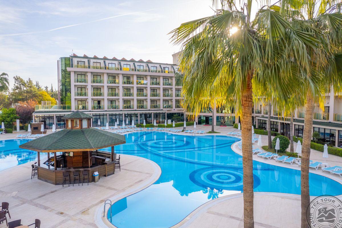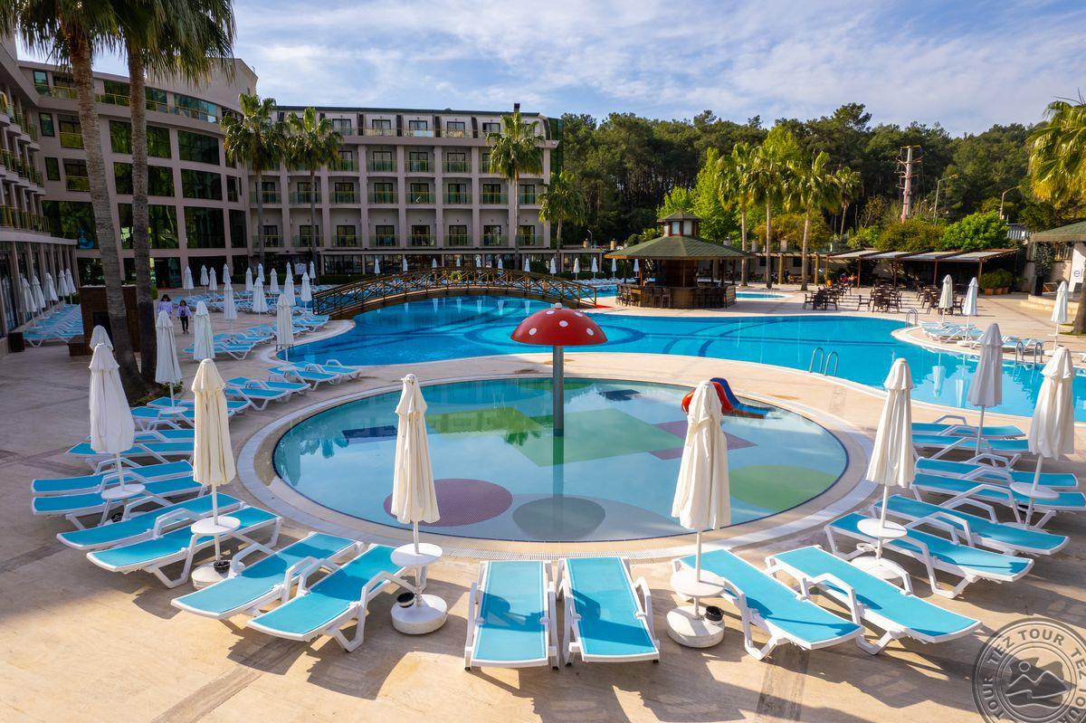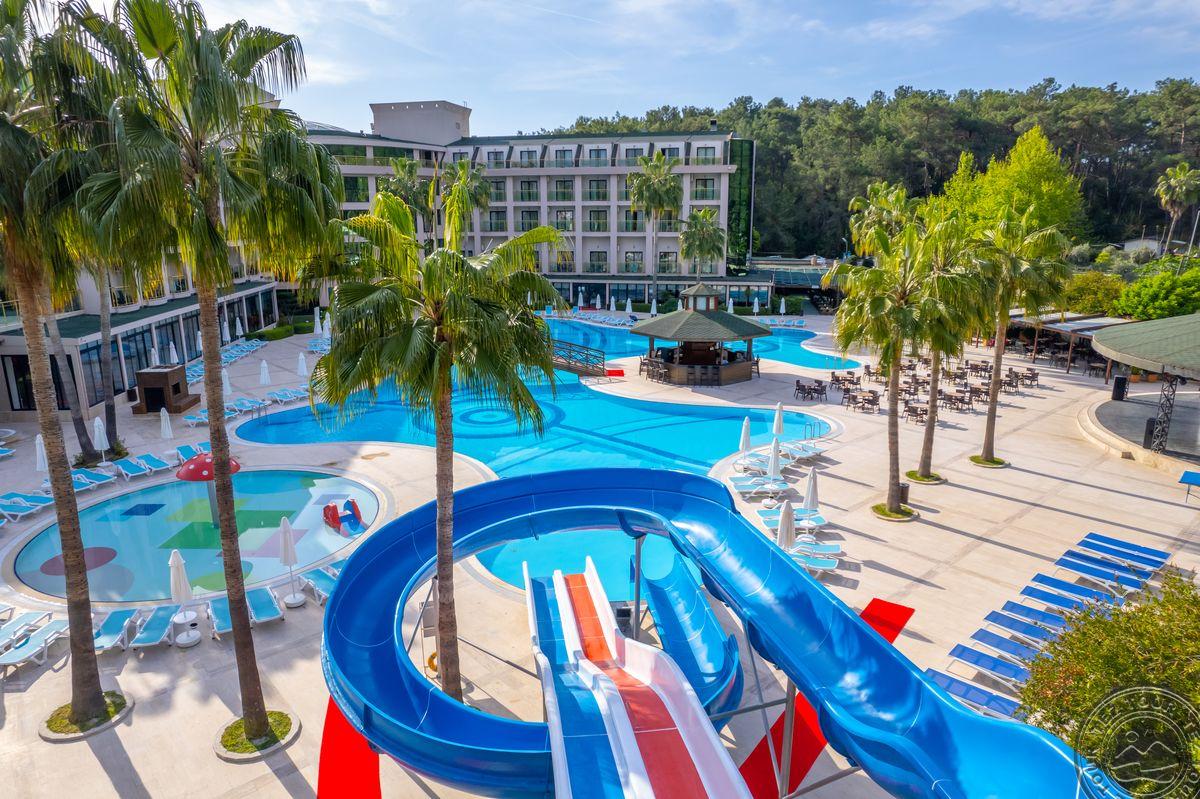 Eldar Resort viešbutis, įsikūręs Kemer mieste, Turkijoje, siūlo prabangias paslaugas su viskas įskaičiuota sistema. Viešbučio svečiai gali mėgautis privačia paplūdimio zona, dideliais baseinais su vandens kalneliais, įvairiomis pramogomis ir vaikų veiklomis. Siūlomi gurmaniški patiekalai ir ekskursijos, kurios leis atsipalaiduoti ir pasimėgauti Viduržemio jūros pakrantės grožiu. Tai ideali vieta šeimoms.