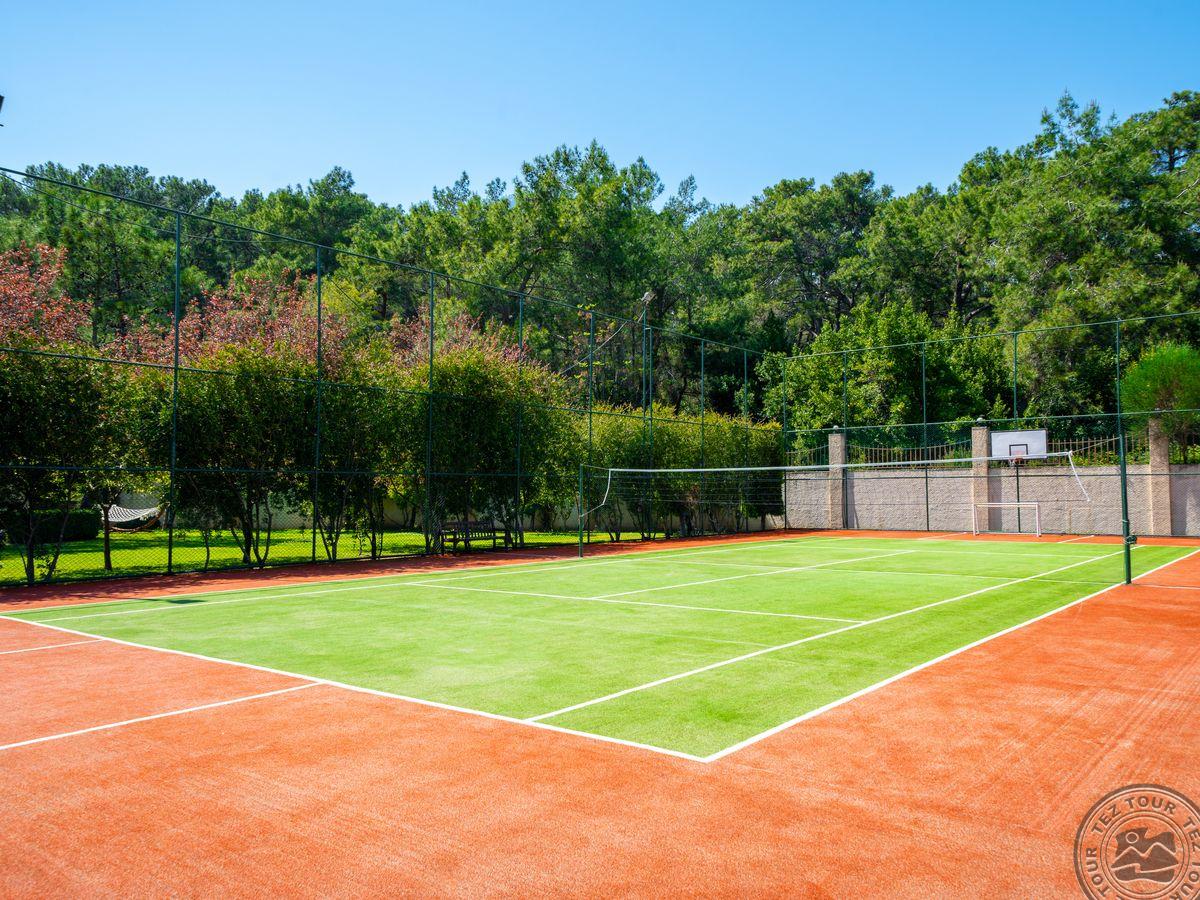 • teniso kortas nemokamai (sintetinė danga)