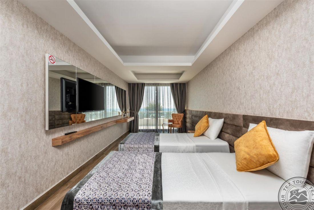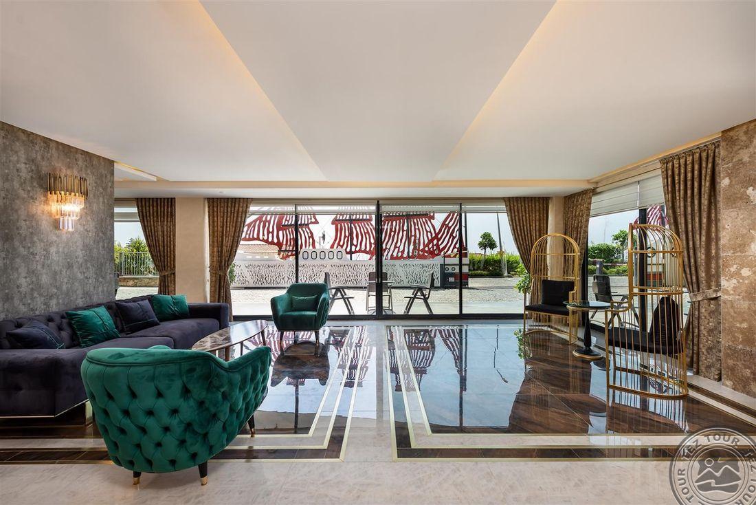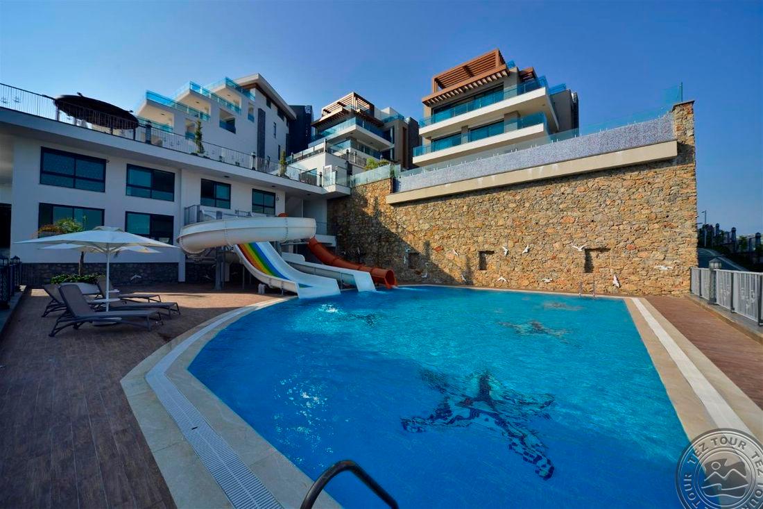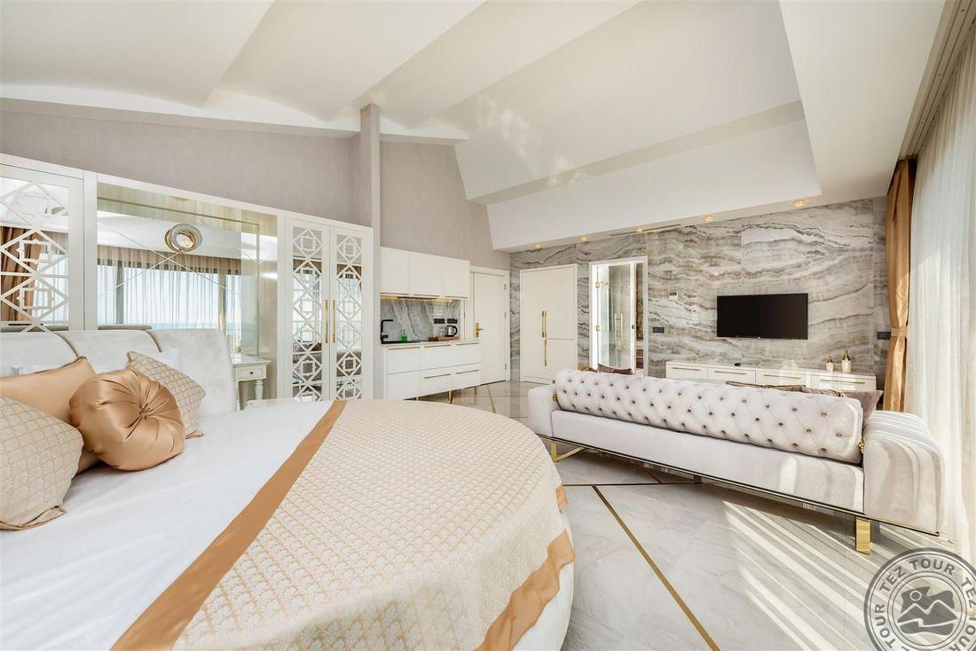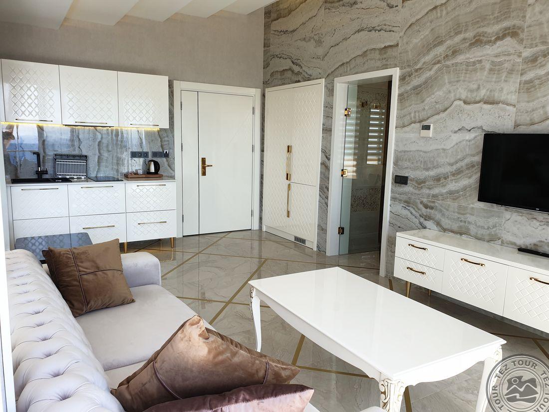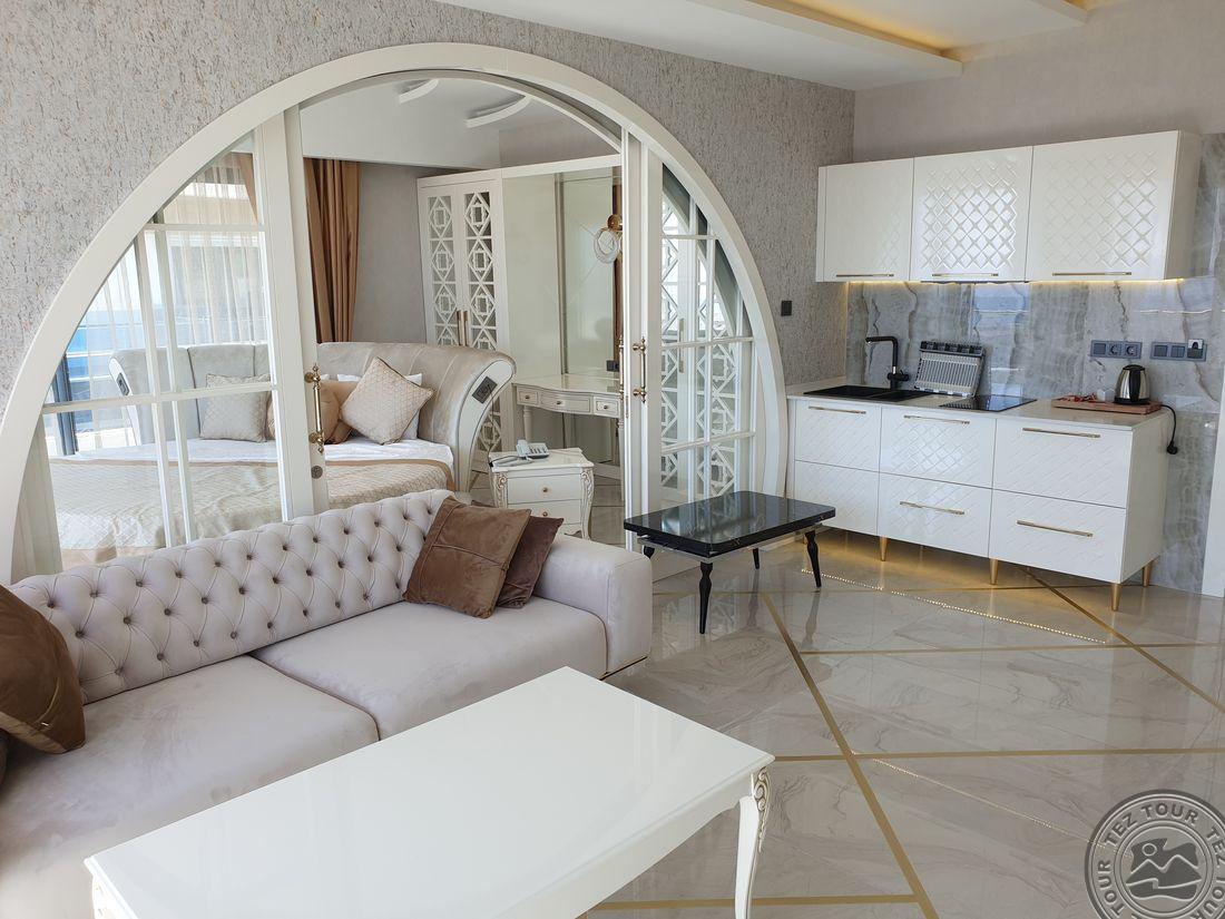 Elite Luxury Suite & Spa Hotel tai aukštos klasės 5* viešbutis Alanijoje, kurį sudaro 60 prabangių kambarių su moderniais patogumais, erdviomis svetainėmis ir aukštos kokybės interjeru, orientuotas tiek į šeimų, tiek į porų poilsį. Svečiams siūloma profesionali SPA ir sveikatingumo centras, treniruoklių salė, baseinai su čiuožyklomis, įvairios pramogos ir gyva muzika. Rinktinė virtuvė daugiausia dėmesio skiria regioniniams ir tarptautiniams patiekalams, o draugiškas personalas užtikrina aukščiausio lygio aptarnavimą. Tai puiki vieta ieškantiems tylos, komforto ir išskirtinės poilsio atmosferos.