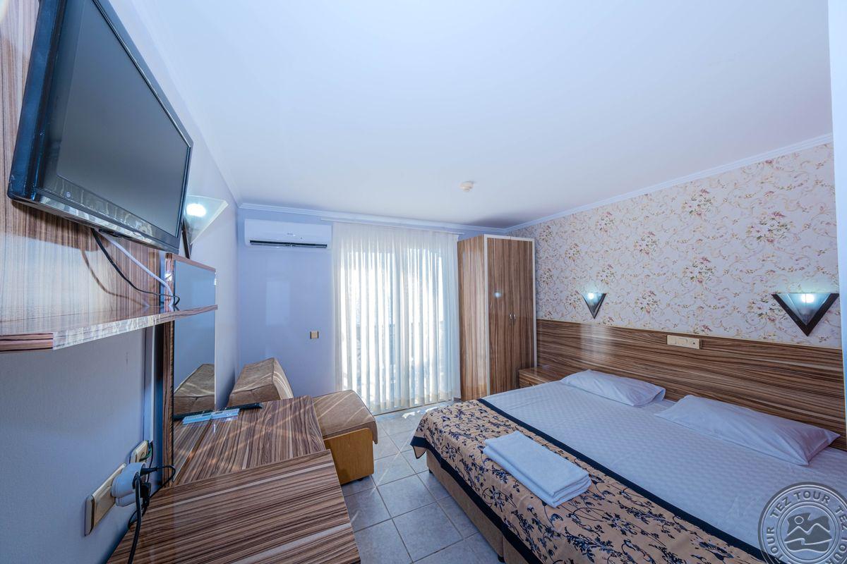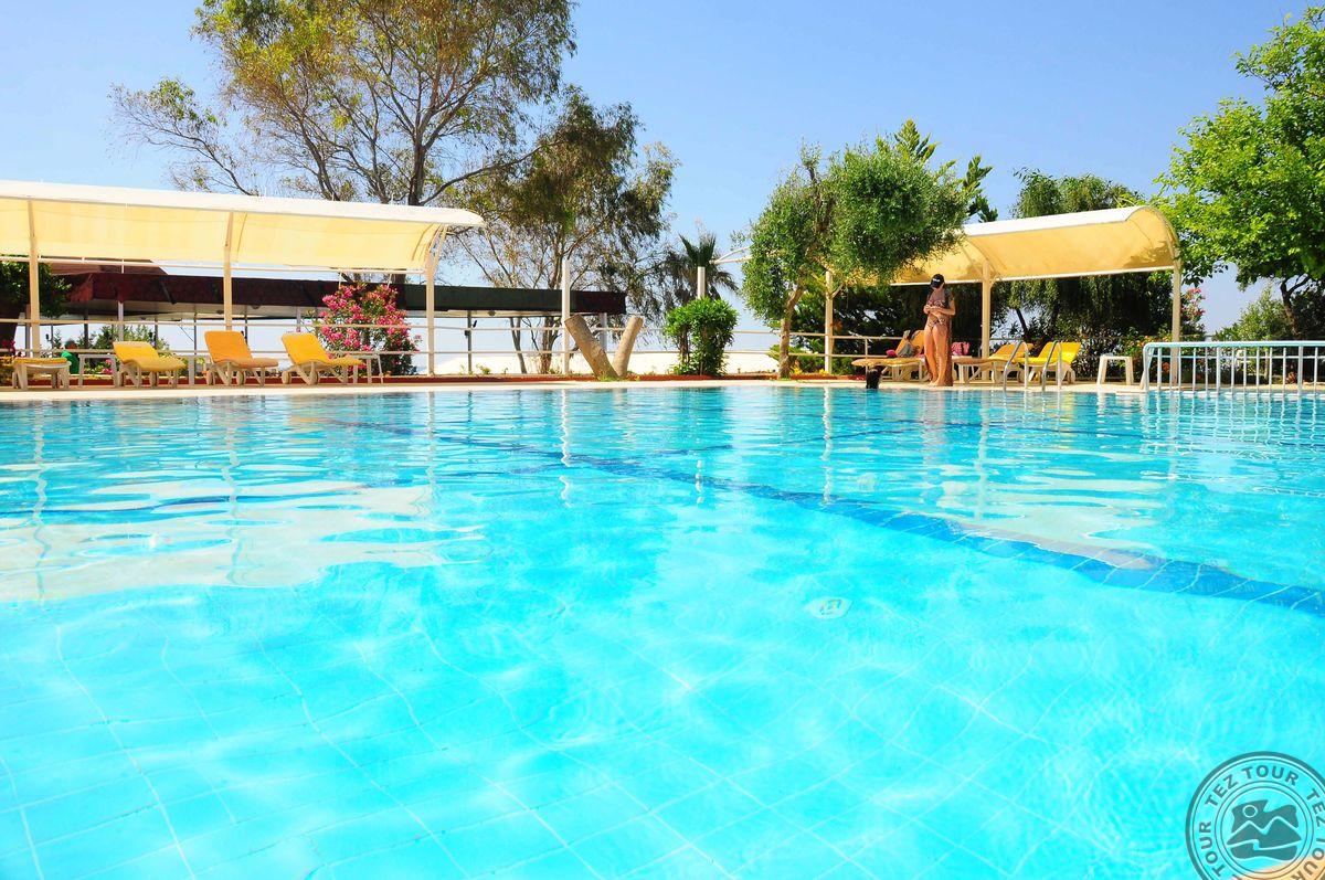 Здравствуйте была в отеле 6мес. 23год. хачу написать мой взгляд на отдых. Очень теплое море,прям красота.За отель находится возле моря очень удобно два бассейна есть даже . Интернет в холле без платныей .В номере за отдельную плату.Могут дать сейф ето тоже за отдельную плату. Заказывали номер семейный так как у нас 15лет подросток, чтоб был отдельно. Оплата сразу при бронировании была .Но по приезду сказали что нет таких номеров мол ремонт ищо будет два дня.Дали нам одну комнату.Настрония нет уже .прошло два дня дают такой же номере.опять говорят нету номера.потом через 4 дня нас зовут и дают на семейный номер.опять мы переехали уже в 3 по щоту номер .е.Так ми отдыхали сем дней .если так можно сказать. Выйдя с отеля очень красиво выходит на кладбище. Ну если что сердце станет то хоть рядом будет. Еда была и подпорчена попадалась и чистота желает лучшего...Куда не ткнись сюрприз.