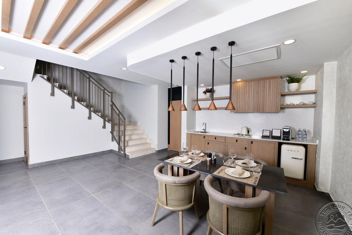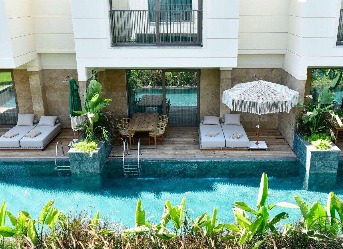 5 dviejų kambarių  Casita by ethno 3+1 tipo numeriai (pirmame aukšte svetainė su mini virtuve, miegamasis atskirtas durimis, vonios kambarys, terasa su išėjimu prie baseino; antrame aukšte 2 miegamieji atskirti durimis, 2 vonios kambariai, maks. 7 asm., 185 m2).