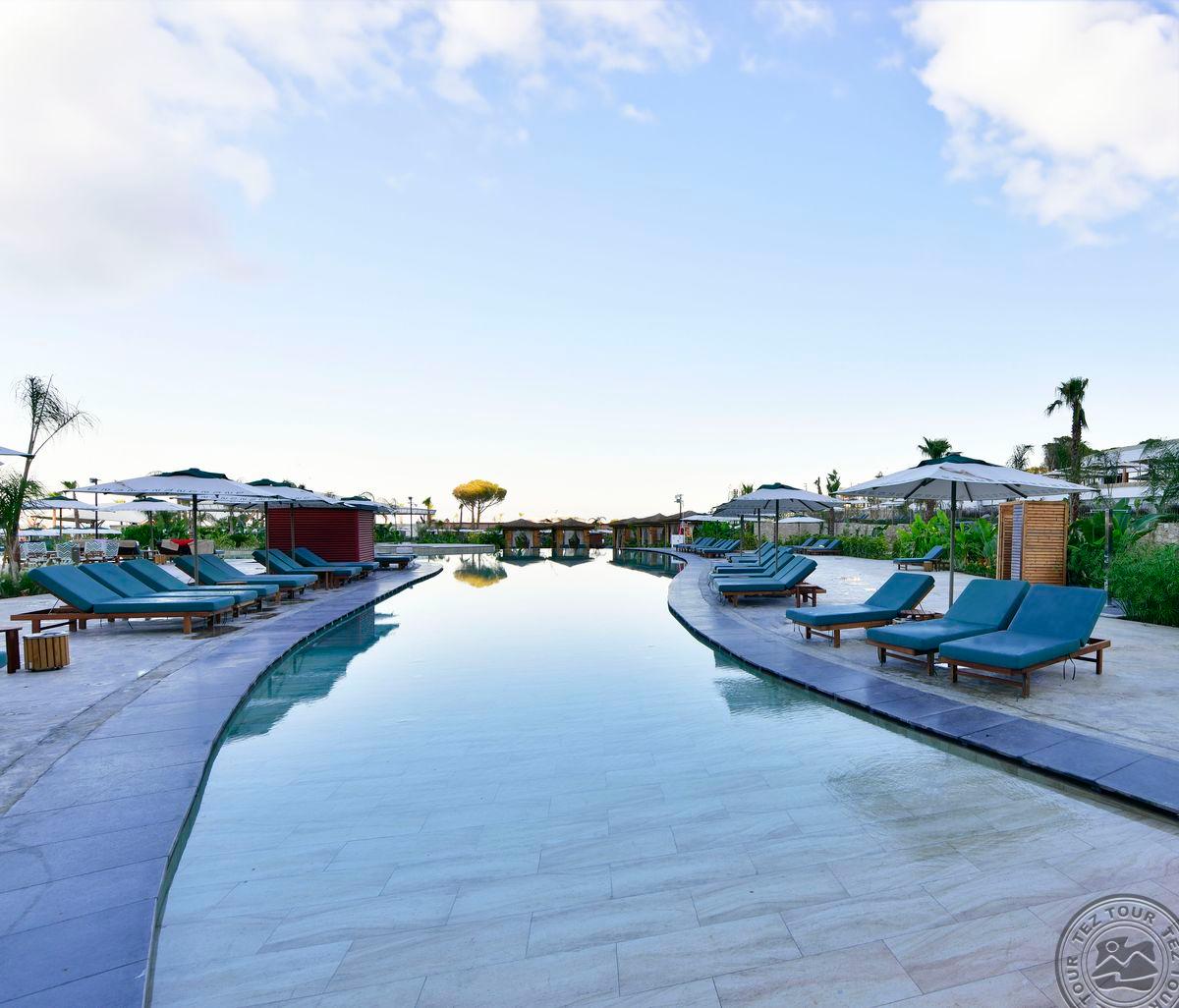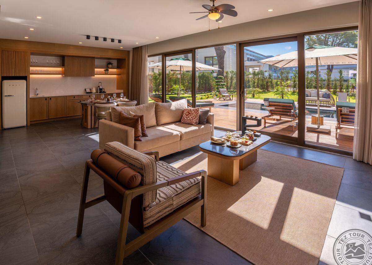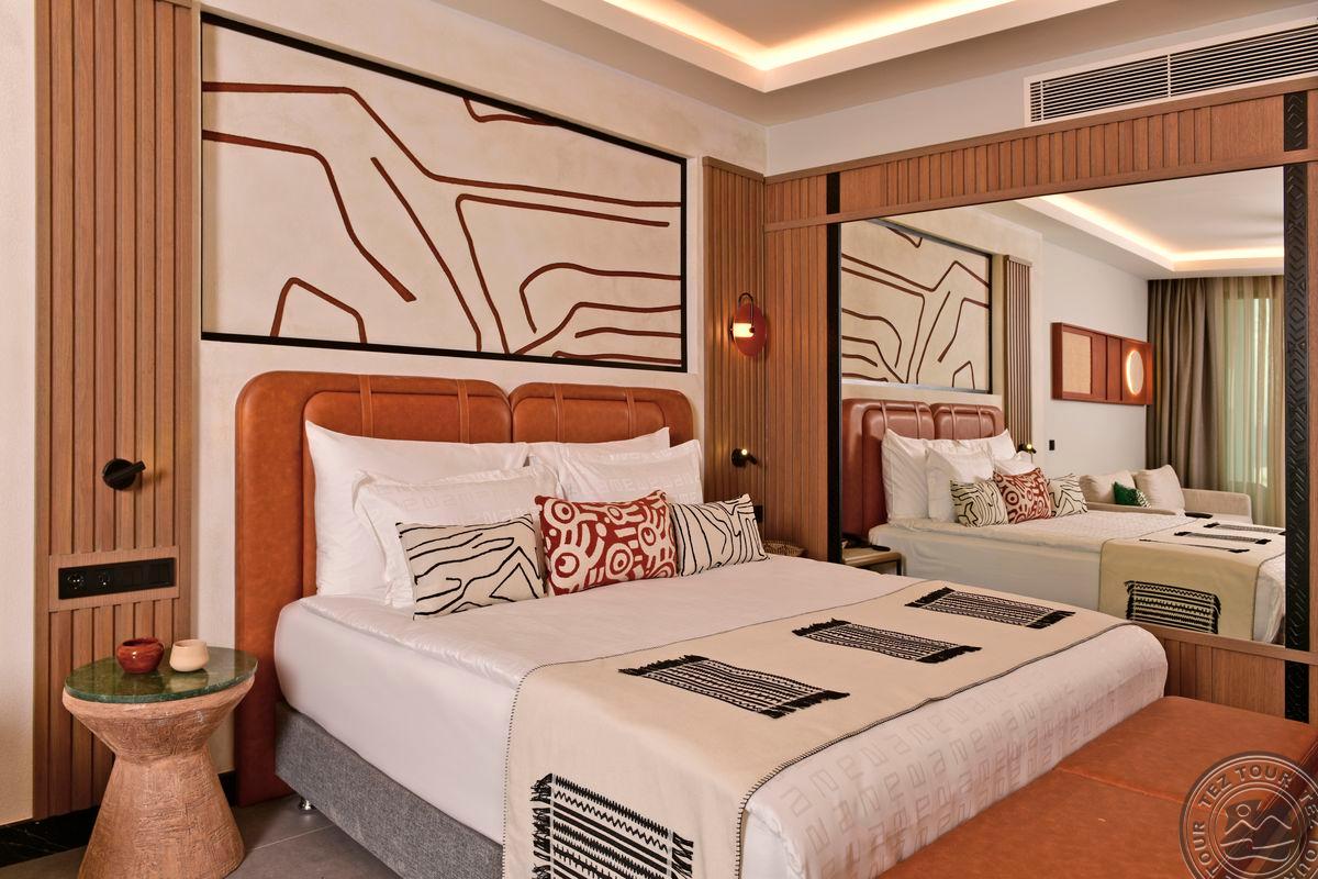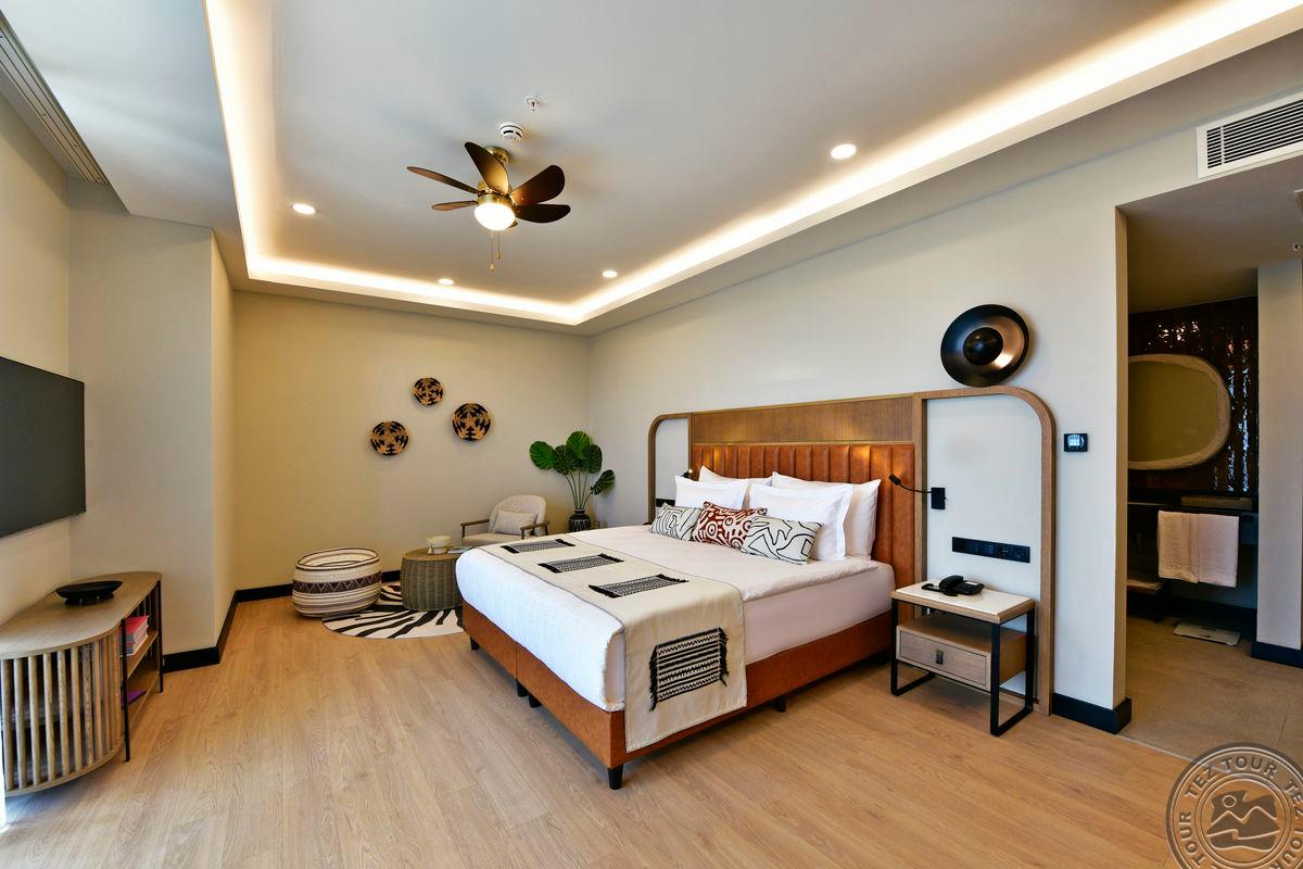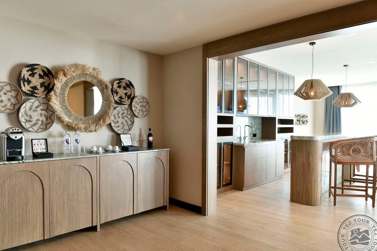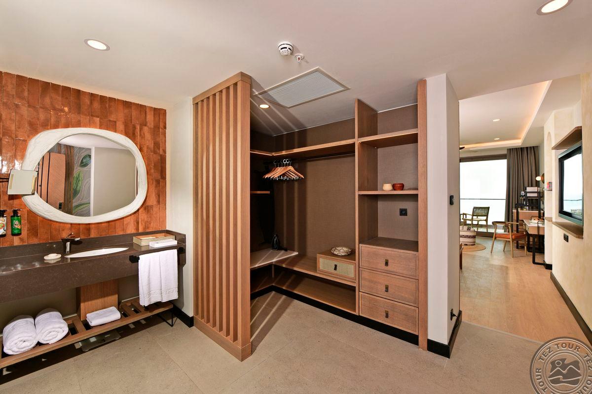 5 dviejų kambarių Corner swim up suite infinity sea view tipo numeriai (tiesioginis išėjimas prie baseino, du miegamieji atskirti durimis, 3 vonios kambariai, maks.4+1 asm., 125 m2).