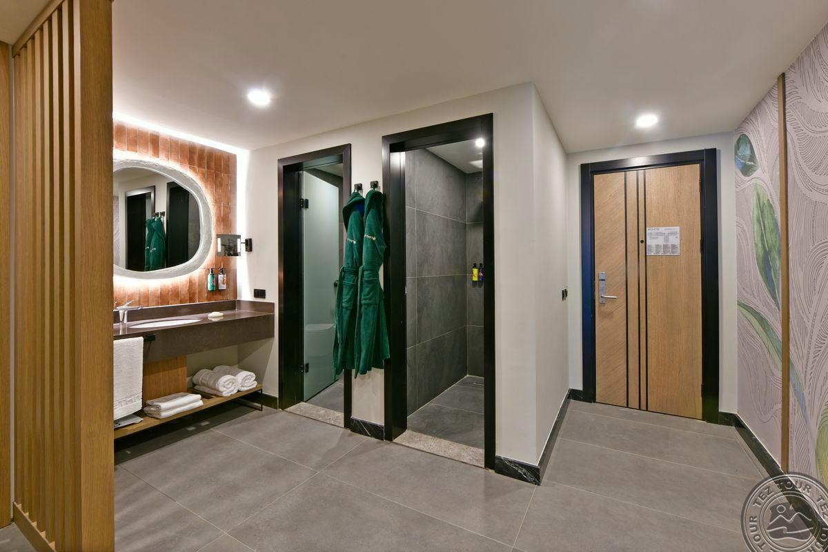 1 dviejų kambarių Corner swim up suite forest view tipo numeris (išsidėstę pastato gale, tiesioginis išėjimas prie baseino, du miegamieji atskirti durimis, 2 vonios kambariai, maks.4+1 asm., 134 m2).