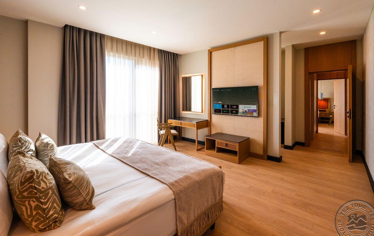 10 dviejų kambarių Family suite sea view tipo numerių (2 miegamieji atskirti durimis, 2 vonios kambariai, 2 drabužinės, maks. 4+1 asm., 80 m2).