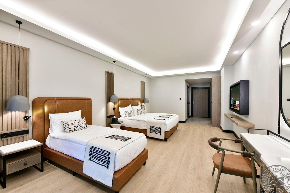37 dviejų aukštų Casita by ethno 2+1 tipo numeriai (pirmame aukšte svetainė su mini virtuve, vonios kambarys, terasa su išėjimu prie baseino; antrame aukšte 2 miegamieji atskirti durimis, 2 vonios kambariai, maks. 5 asm., 160 m2).