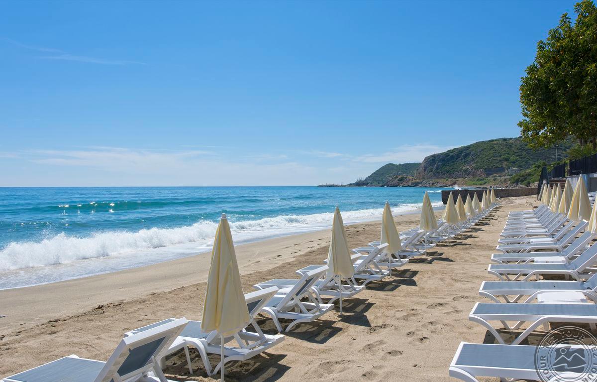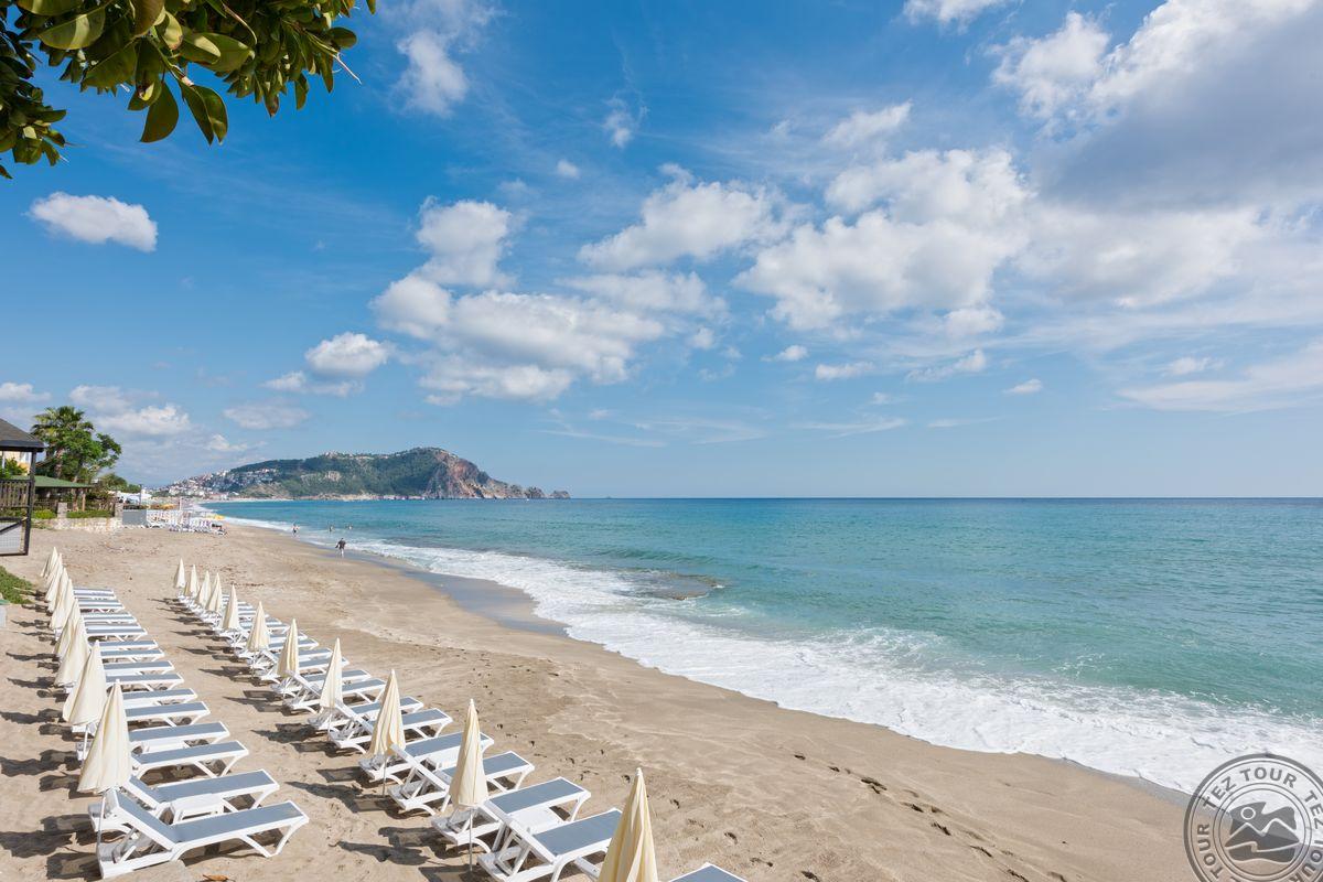 Apie 130 km iki Antalijos miesto oro uosto, apie 1 km iki Alanijos miesto centro, ant jūros kranto.
