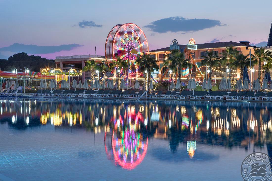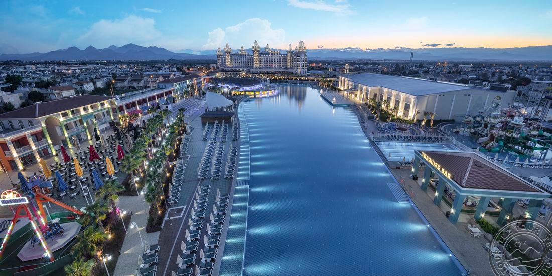 Labai didelė teritorija, kaip miestelis, masinis viešbutis, jūra už 1.7 km, bet vežioja autobusiukas. Atsidaro nuo balandžio 1 d., turi lauke šildomų baseinų. Pagrindinis baseinas milžiniškas, o bendrai iš viso turi 14 baseinų. Šį sezoną turi 2 naujus barus (vienas lauke terasoj, kitas n16). 4 a la carte už papildomą mokestį, išskyrus granada villa room (apsistojus šiame kambaryje - nemokamai). Maldyvų zona tik suaugusiems. Turi savo šokolado namus, patisseria, kuri nemokama vasaros metu, yra ledų nemokamai. Vandens pramogų nemažai, daug vandens kalnelių, tikrai didelis akvaparkas, jame sakė vyksta vakarėliai, yra ir tingioji upė, bangų baseinas, luna park už papildomą mokestį. Prie kai kurių, mažesnių baseinų yra atvežtas smėliukas.Turi nemokamai maisto kioskelių - doner kebab, pica, vafliai, grill, žuvies. Sakė pasižymėti, kad wonderland kambariai ne pagrindiniame pastate, o pastate prie akvaparko, nes būna nesusipratimų. Persoanalas atrodo malonus labai, visi šypsosi, su nuotaika.