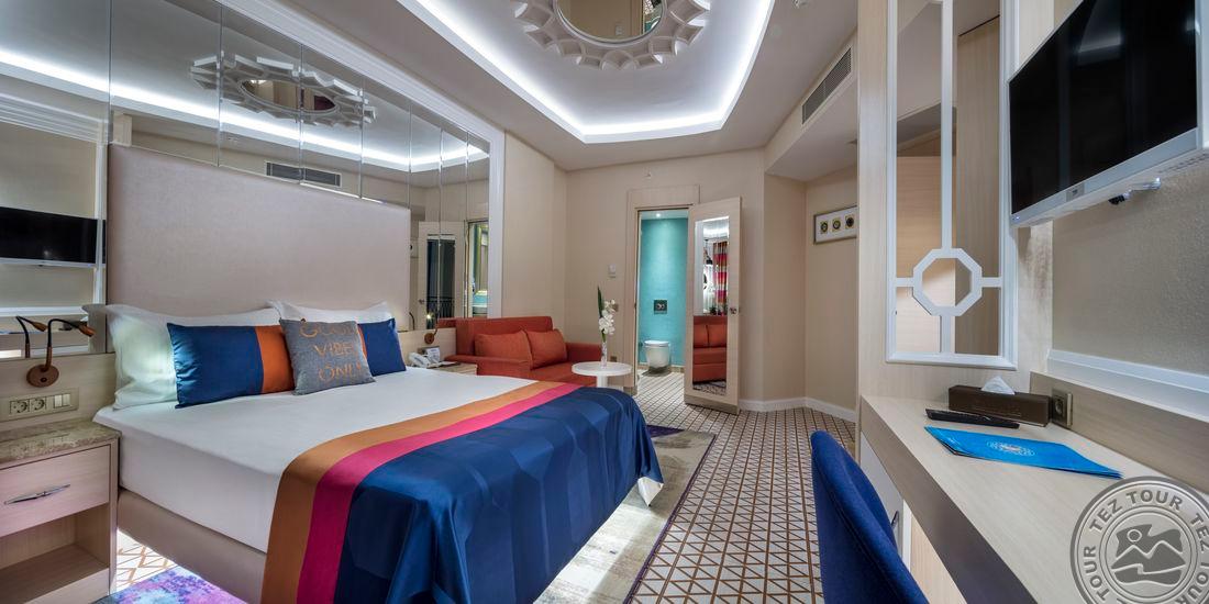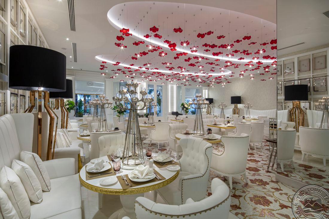 Milžiniška teritorija, iki jūros 1,5km. Bet savo teritorijoje turi prie baseinų smėliuko. Visur auksas, prabanga, spalvotas, ryškus interjeras, daug veidrodžių visur labai, patiks ne visiems. Visas miestas viešbutyje. Bet lobby labai didelis. Balandžio vidury žmonių pilna, populiarus viešbutis. Visur skaniai kvepia, yra vip lounge. Importiniai kai kurie nemokamai. Daug gražių vietų nuotraukoms. Standart max 2+2 arba 3 suaugę. Didžiausias baseinas Europoje. Normal family 2 miegamieji su durim, 1 vonia, 4+1. Family Deluxe jau su 2 voniom. Privatus paplūdimys, yra kas 15 min mašinytės. 2 vidiniai baseinai. 2 vaikų klubai. Per kelią wonderland pusė, ten labai triukšminga, yra požeminė perėja. 2017 atidarytas. 4 ala carte visi mokami. Wifi free visur. Visur muzika prie baseinų, tik prie pat pagrindinio pastato ramesnė aplinka prie baseino. Maldyvų nameliai max 2 suaugę. Luna parkas mokamas. Barų, restoranų labai daug, akvaparkai keli.