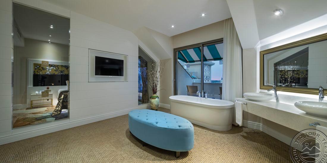 13 wonderland pool deluxe room tipo numerių (papildomame pastate, su vaizdu į baseiną, miegamasis, svetainė, 2 vonios kambariai, maks. 2+1 asm. + kūdikis, 48 m2).