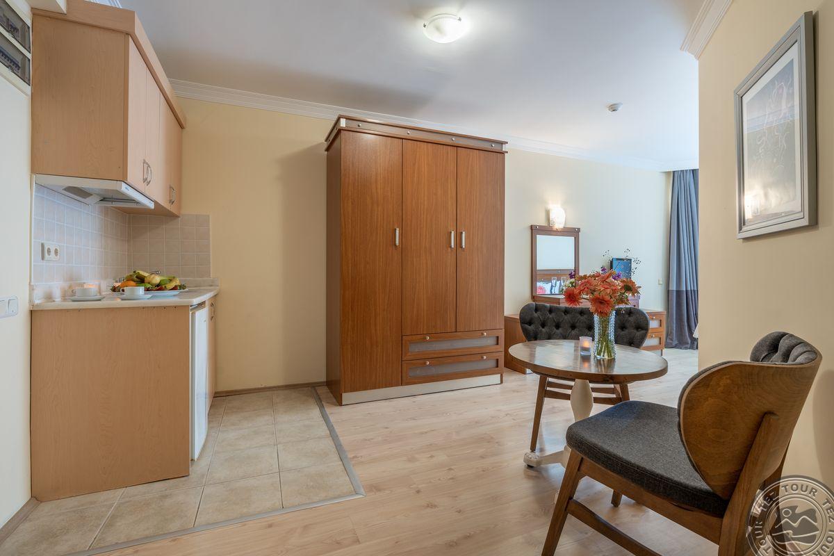 Family Room tipo numeriai (su vaizdu į apylinkes arba baseiną, svetainė, miegamasis atskirtas durimis, maks. 6 asm., 46 m2).
