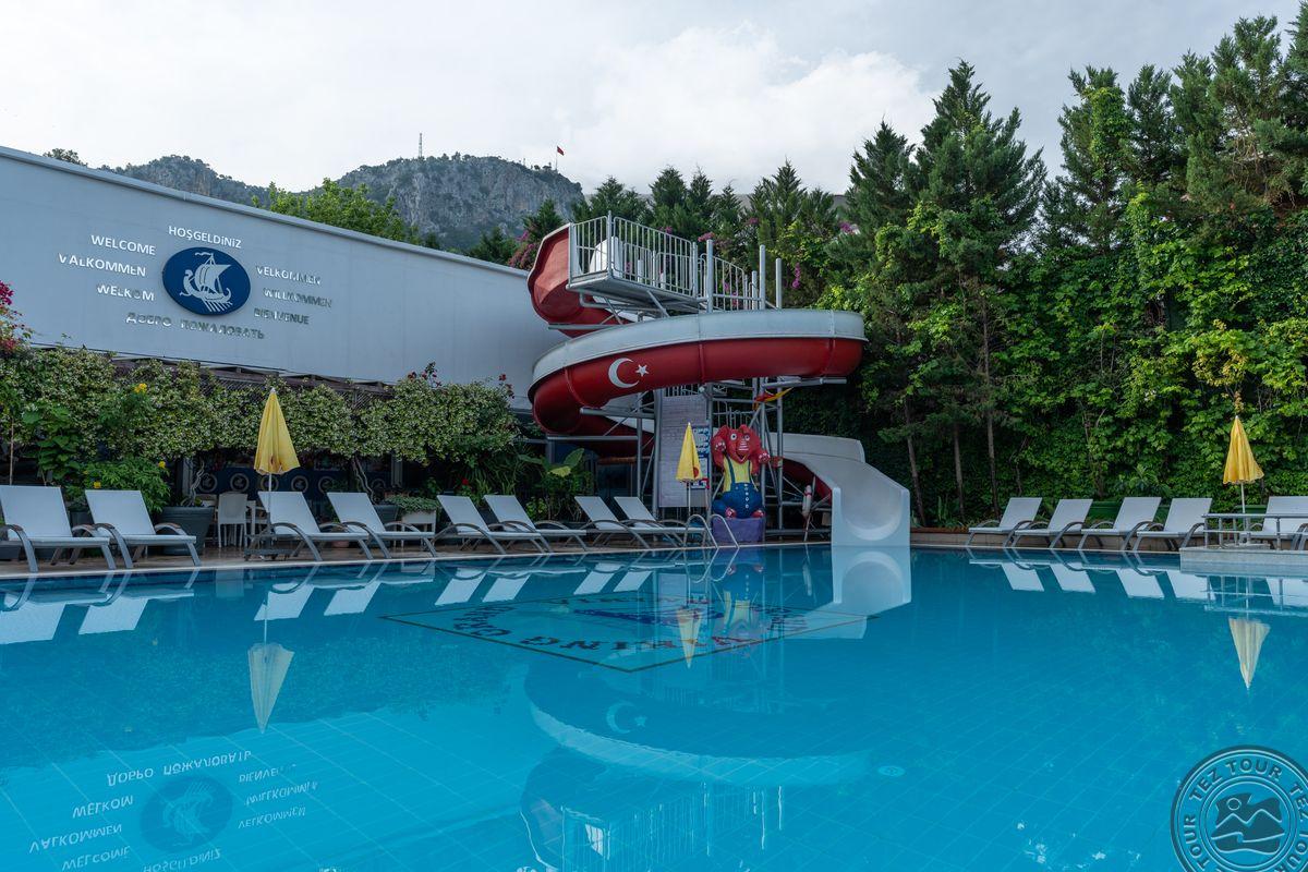 Viešbutis "Grand Viking Hotel", kurio tikslas - pasiūlyti savo svečiams nepamirštamas atostogas su aukščiausios kokybės paslaugomis Kemero centre, kur žalia spalva susilieja su mėlyna, laukia jūsų, su "viskas įskaičiuota" koncepcija, saule, paplūdimiu ir unikalia gamtos aplinka. Rekomenduojamas turistams, kuriems svarbus atstumas iki miesto centro.