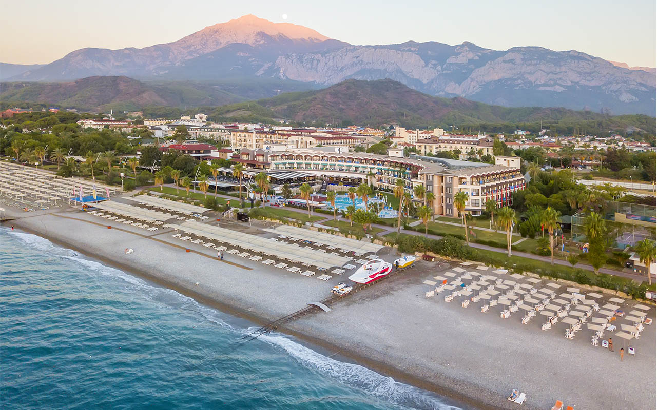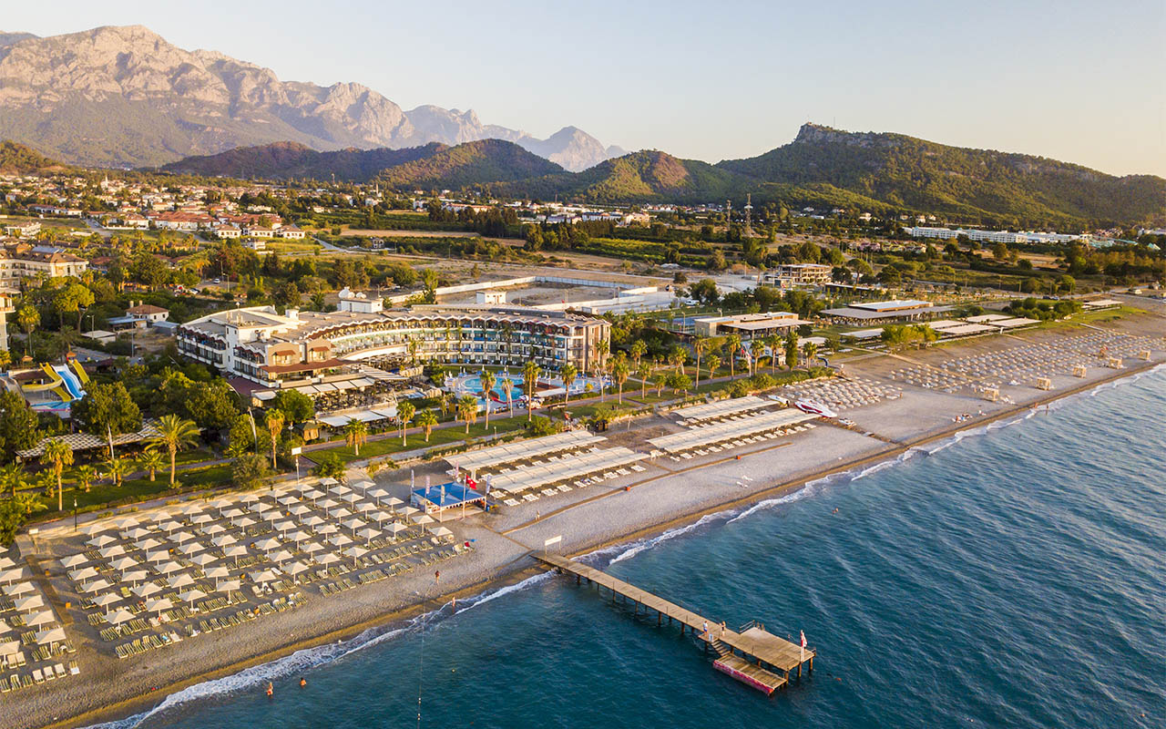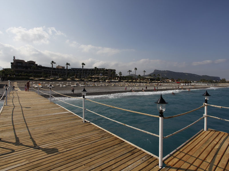Čamjuvos gyvenvietėje, ant jūros kranto, apie 60 km iki Antalijos miesto oro uosto, apie 5 km iki Kemero.
