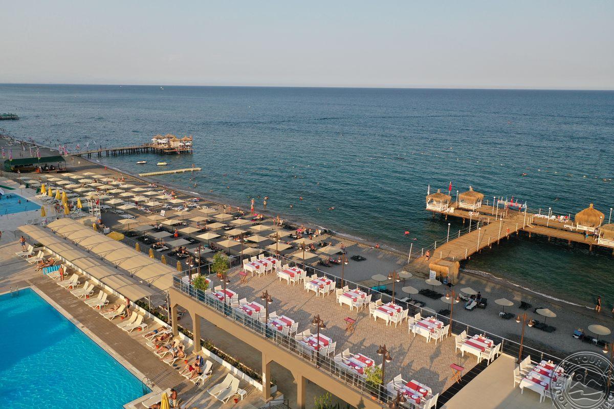 Vieta gera, bet tai ir viskas. Kambariai sovietiniai, personalas tragiškas, publika viešbutyje turkai arba rusai (tas pliusų nepridėjo). Gultus užimti eini kaip į darbą anksti ryte. Maistas... paskutinėm dienom reikėjo galvoti ką valgyti nes viskas buvo nusibodę. Jūroje graužė odą žuvytės ir gan skaudžiai, vaikam iki kraujo, plius akmenukų paplūdimys, kuriuo reikėjo eiti sukandus dantis. Baseinai du, vienas prie kalnelių kur vaikai sėdi ir neina į tualetą visą dieną, kitas sakyčiau per gylus jei vaikas netyčia įkrįstų, apie 160-170 cm. Bet visumoj viskas būtų gerai jei būtum nusiteikęs atostogauti 3* viešbuty.