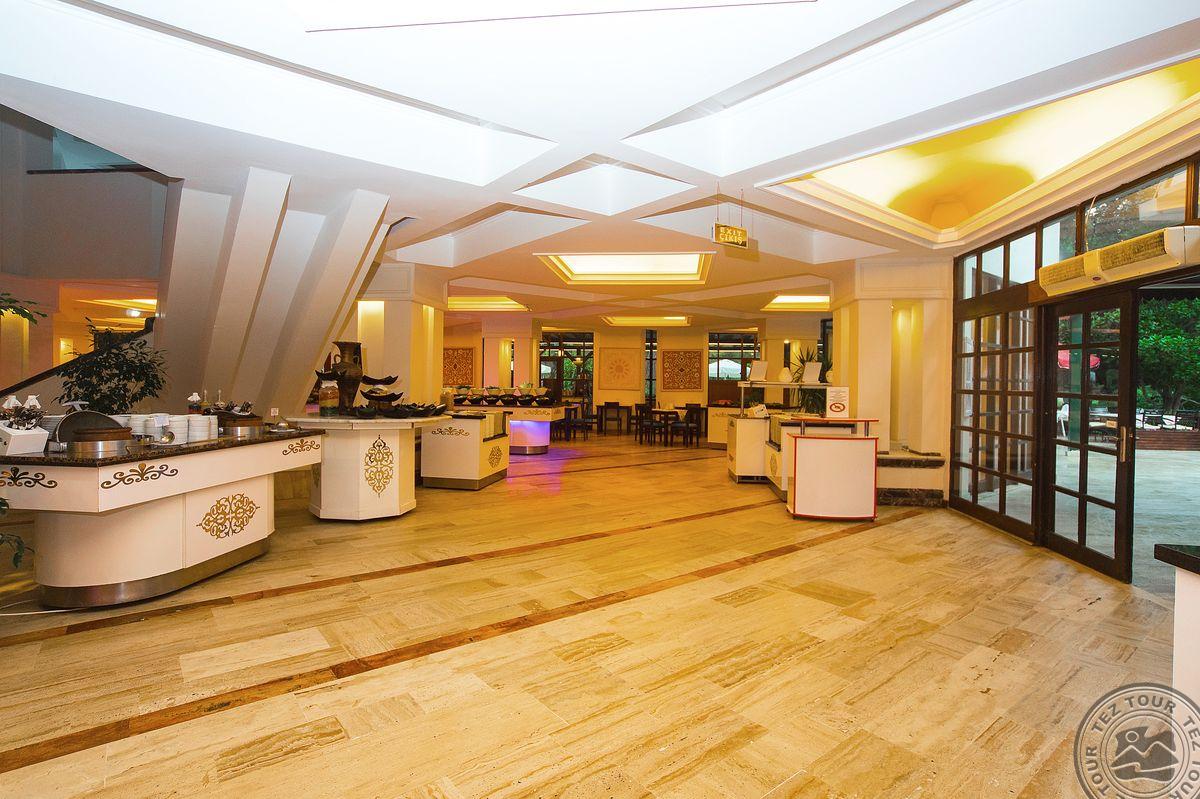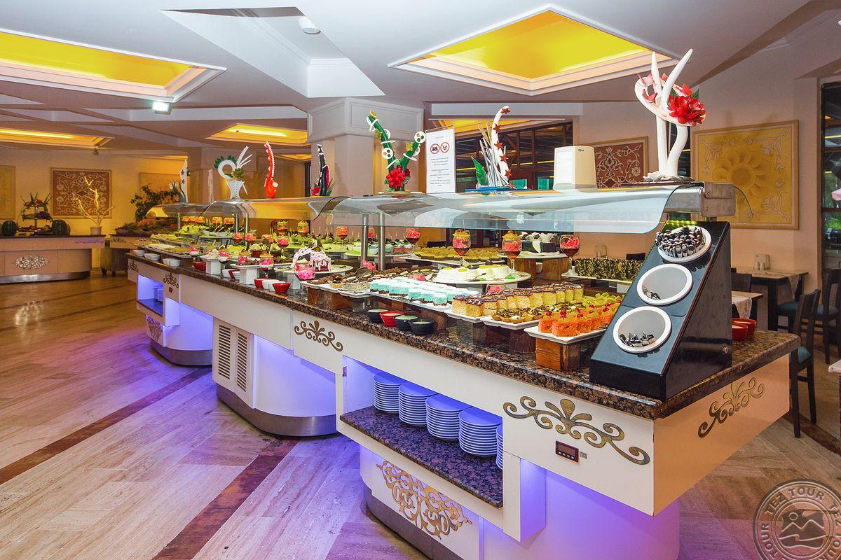 • a la carte restoranai: 2 (turkiškas, italų, žuvies, pagal išankstinę rezervaciją, visos viešnagės metu kiekviename restorane vieną kartą galima apsilankyti nemokamai)