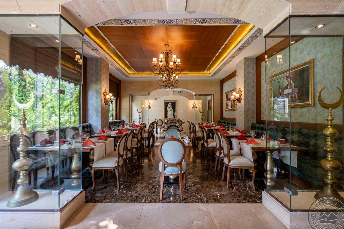 • a la carte restoranai: 2 (italų ir osmanų - pagal išankstinę rezervaciją, už papildomą mokestį; 5 ir daugiau naktų apsistojusiems svečiams 1 apsilankymas nemokamai)