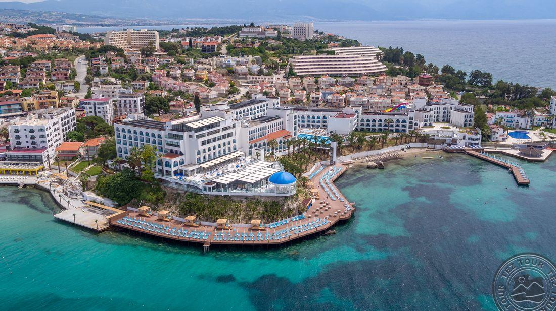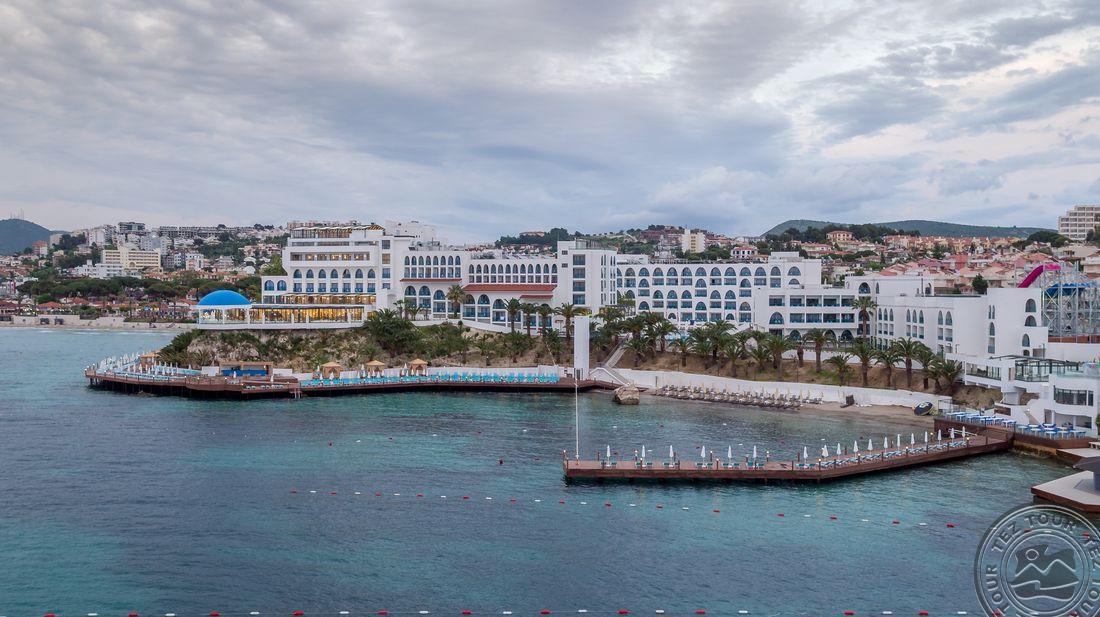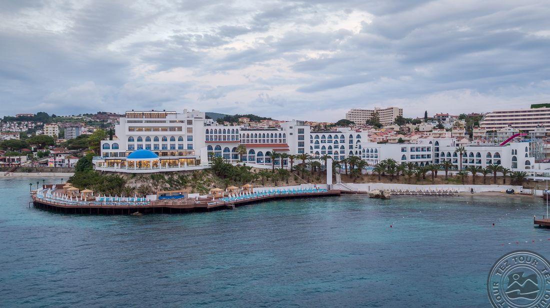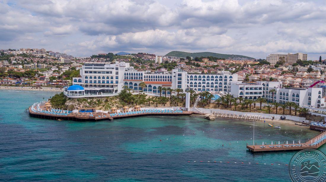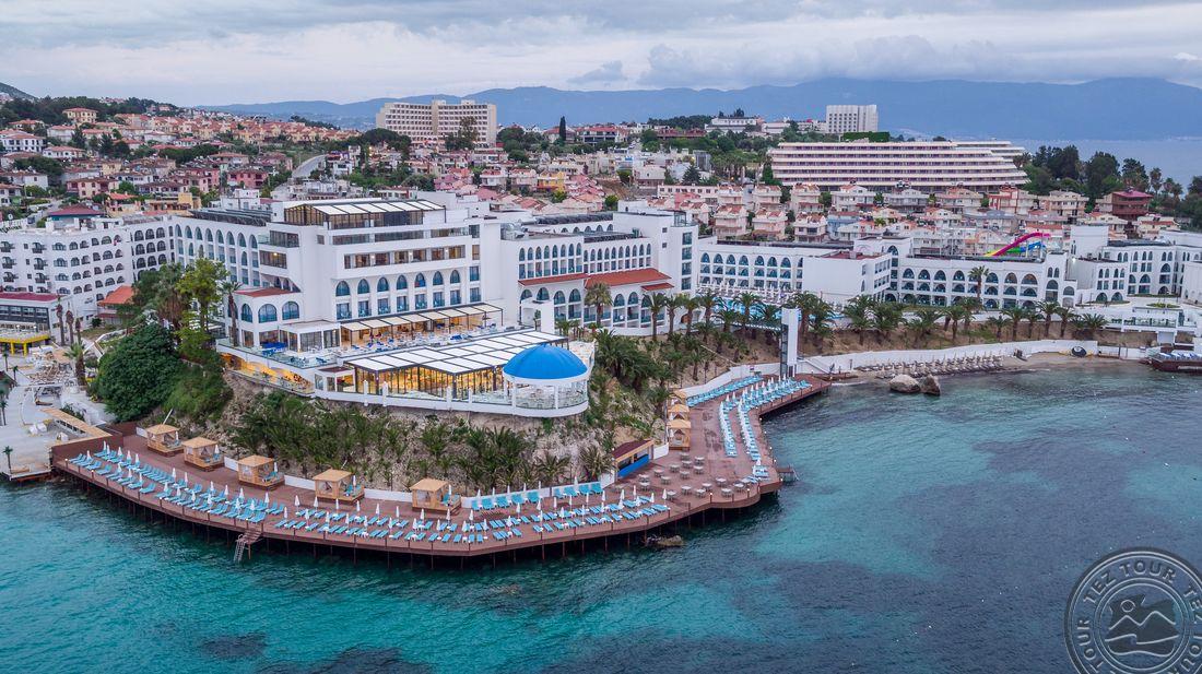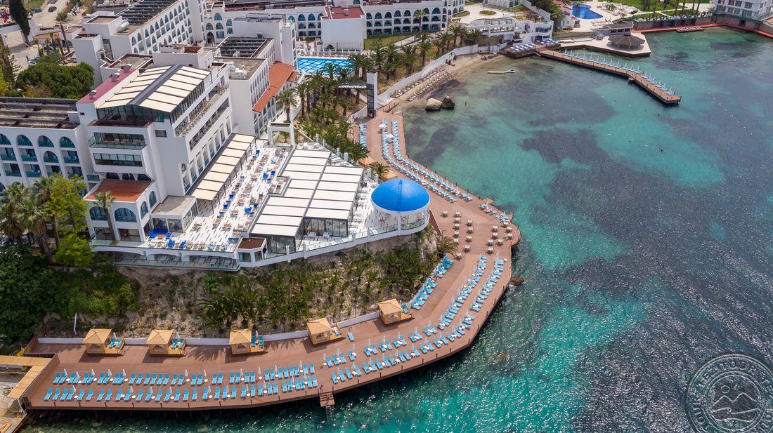 5* viešbutis, kuris yra įsikūręs prie pat Egėjos jūros kranto. Viešnagės metu atsipalaiduokite SPA teikiamomis paslaugomis arba pramogaukite baseinų ir vandens parko teritorijose. Viešbučio numeriuose yra palydovinės televizijos kanalus rodantys plokščiaekraniai televizoriai, balkonai ir svetainės, o iš kai kurių numerių atsiveria vaizdas į jūrą.Rekomenduojamas ramiam šeimyniniam poilsiui.
