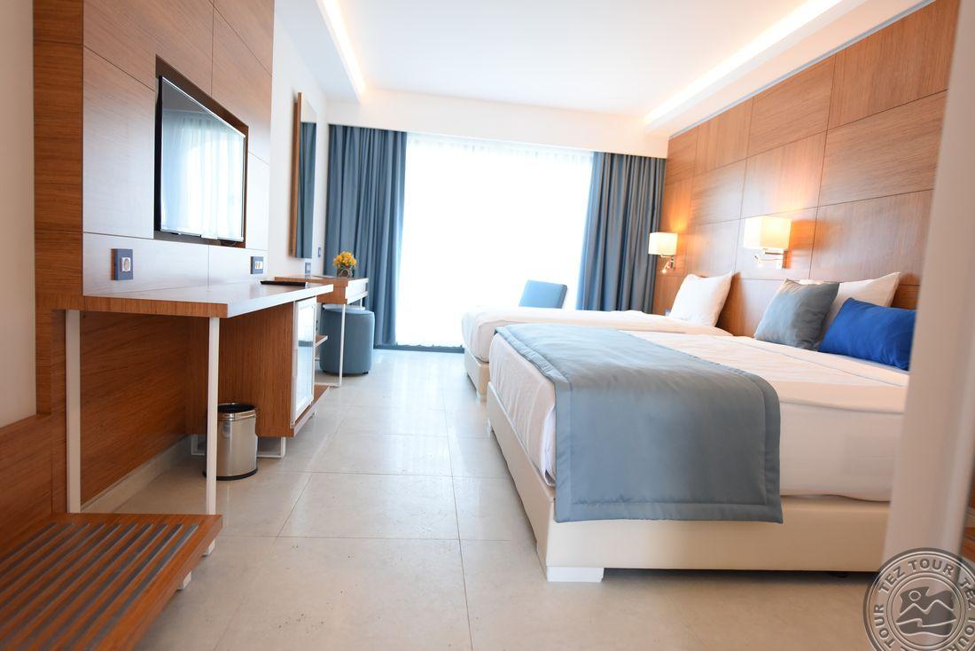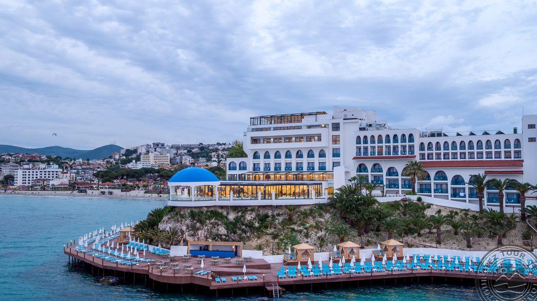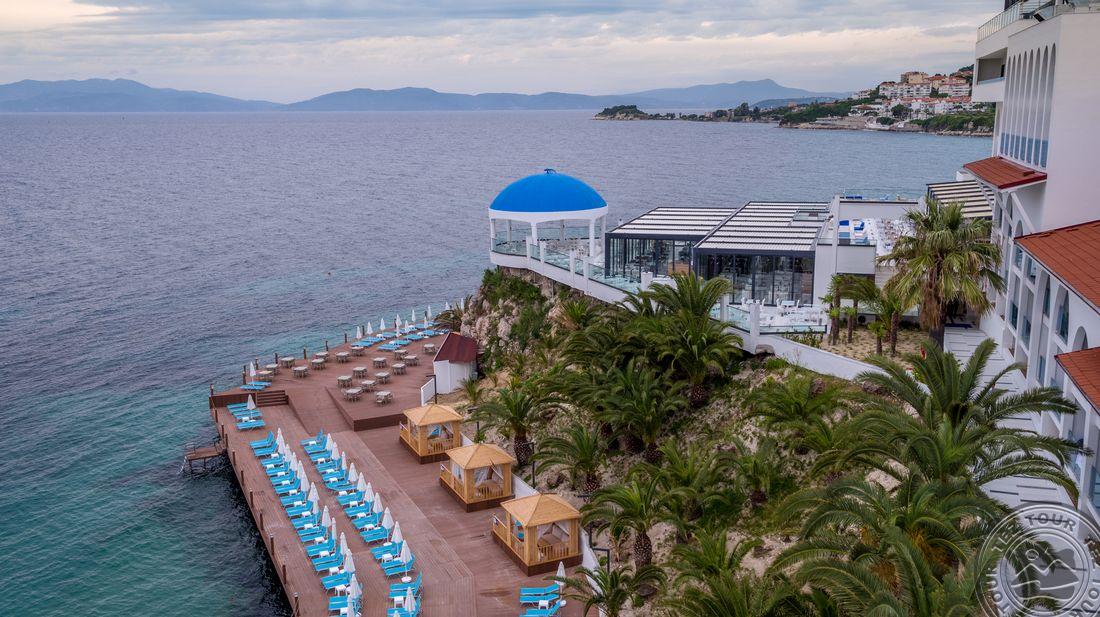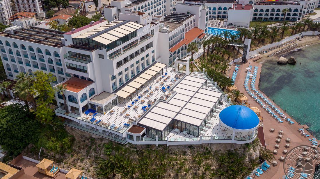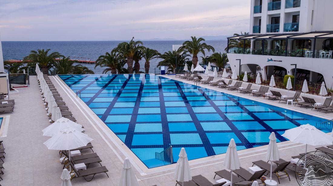 5* viešbutis, kuris yra įsikūręs prie pat Egėjos jūros kranto. Viešnagės metu atsipalaiduokite SPA teikiamomis paslaugomis arba pramogaukite baseinų ir vandens parko teritorijose. Viešbučio numeriuose yra palydovinės televizijos kanalus rodantys plokščiaekraniai televizoriai, balkonai ir svetainės, o iš kai kurių numerių atsiveria vaizdas į jūrą.Rekomenduojamas ramiam šeimyniniam poilsiui.