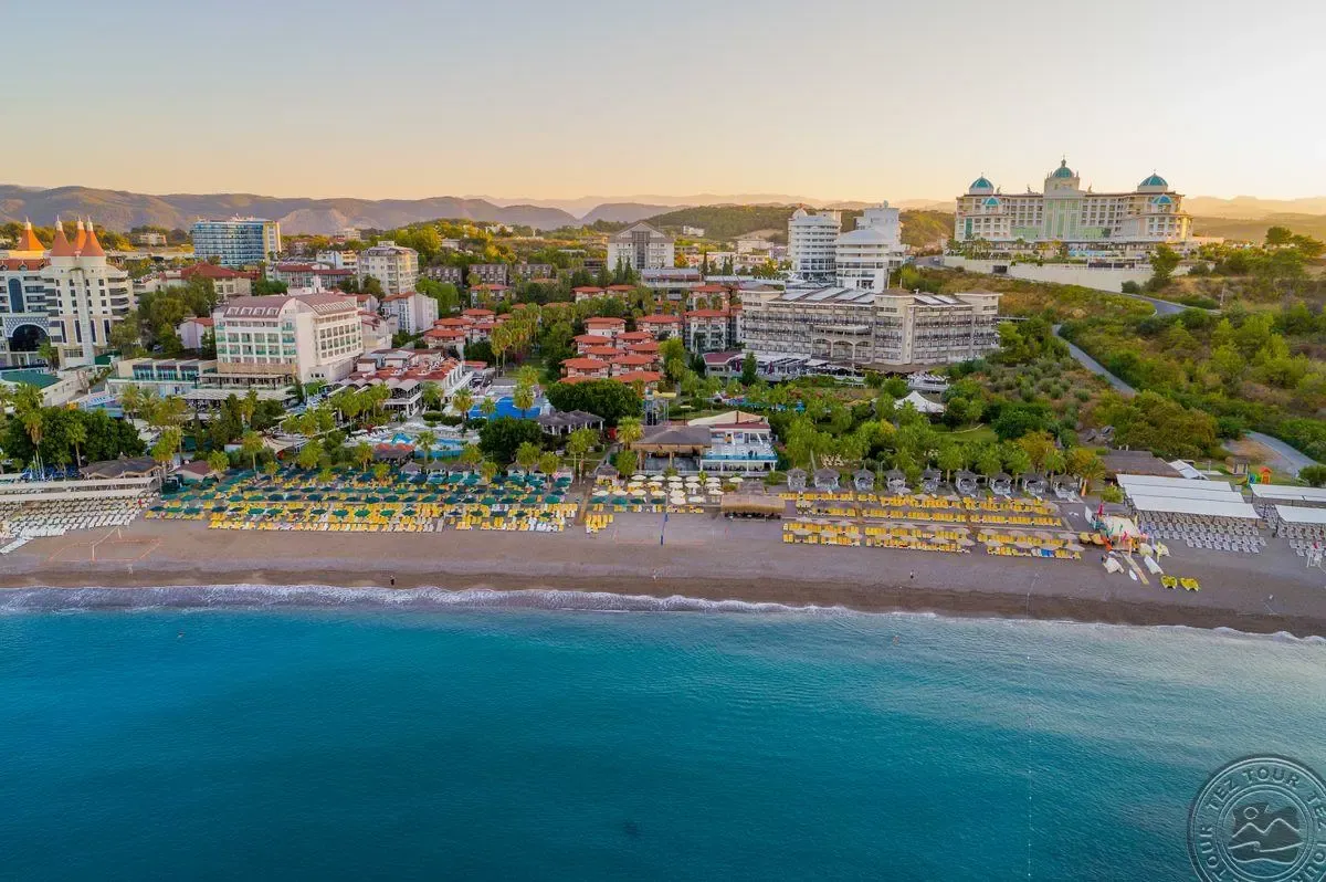 Atstumas iki Antalijos oro uosto yra apie 90 km, 77 km iki Gazipašos oro uosto, iki Antalijos kurorto centro yra apie 35 km, ant jūros kranto.