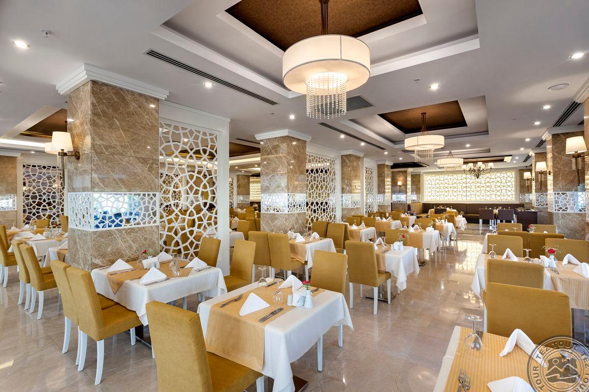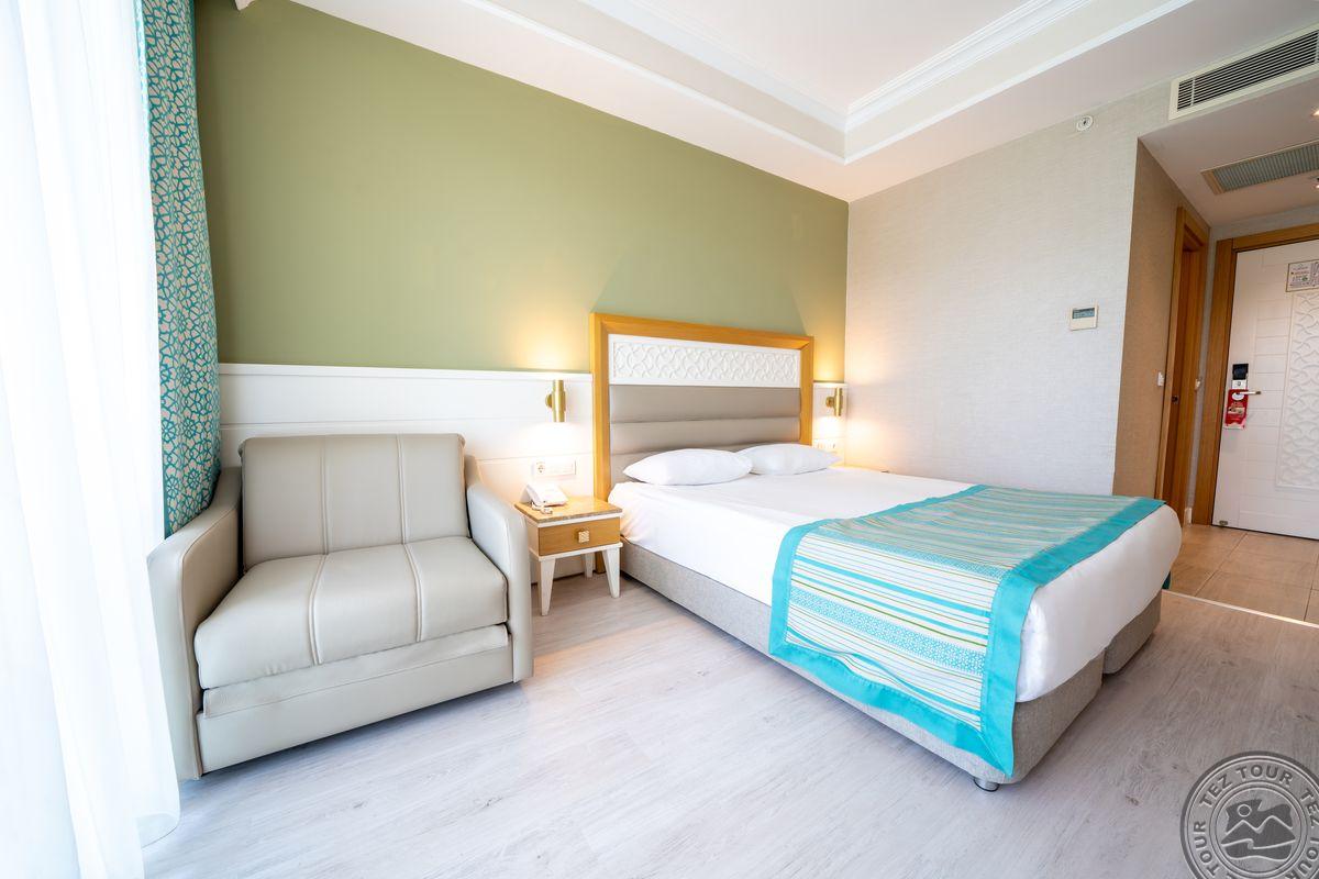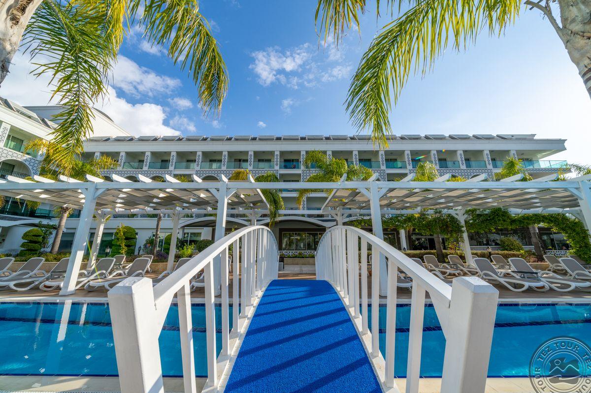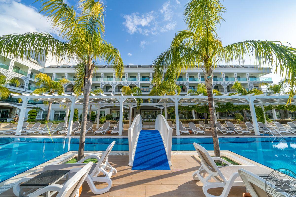 Viešbutis antroje linijoje, per kelią nuo paplūdimio. Atidarytas 2014 metais. Teritorija tvarkinga, matosi, kad prižiūrėta. Turi aquaparką, snack barą. Nedidelė teritorija. Paplūdimys privatus, yra baras. Paprastas viešbutis, neblogas ekonominis variantas netoli Kemero. Family kambariai geri. Daug turkų turistų. Viešbutis skirtas aktyvioms šeimoms.
