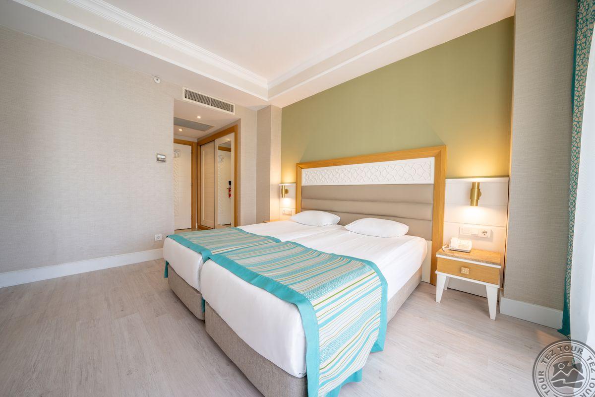 49 comfort standardroom tipo numeriai (dvigulė arba 2 viengulės lovos, privilegijos: kavos/arbatos gaminimo rinkinys, vaisiai, vynas, 10 proc. nuolaida SPA centre, 50 proc. nuolaida a la carte restorane, 50 proc. nuolaida paplūdimio pavėsinei, maks. 2+2 arba 3 asm., 23 m2).