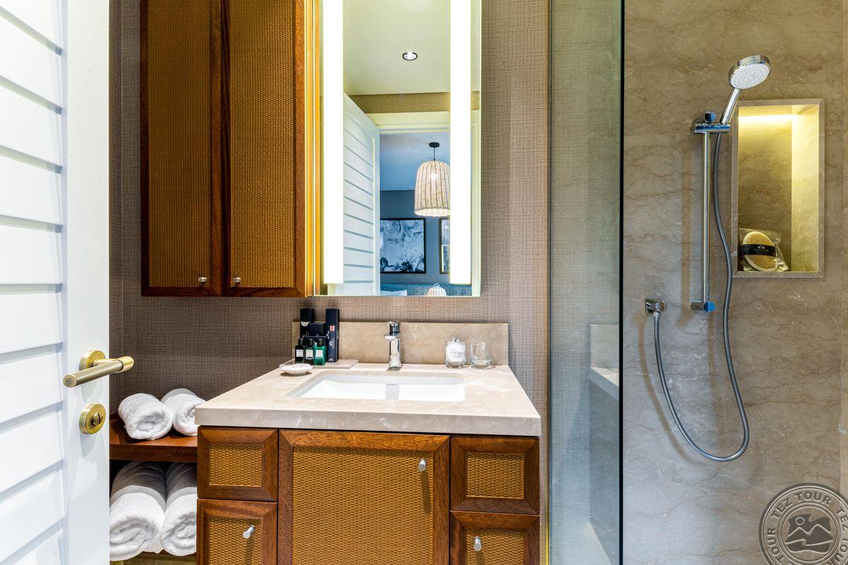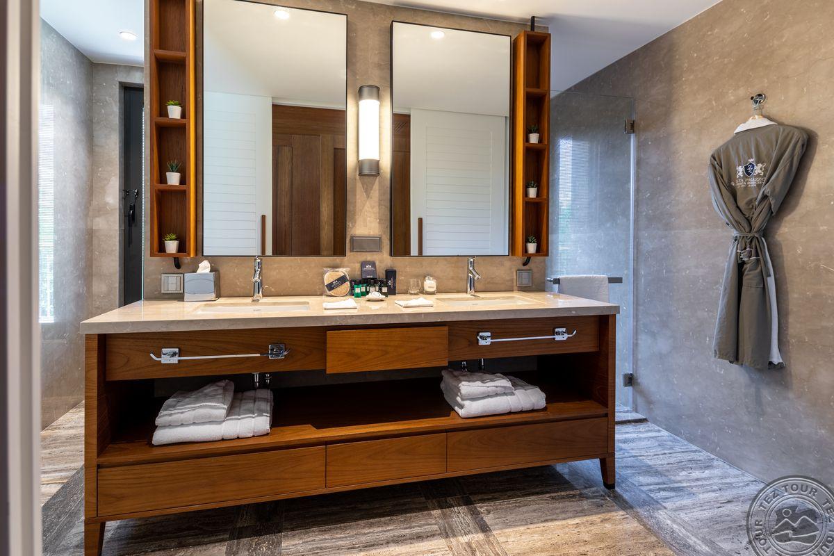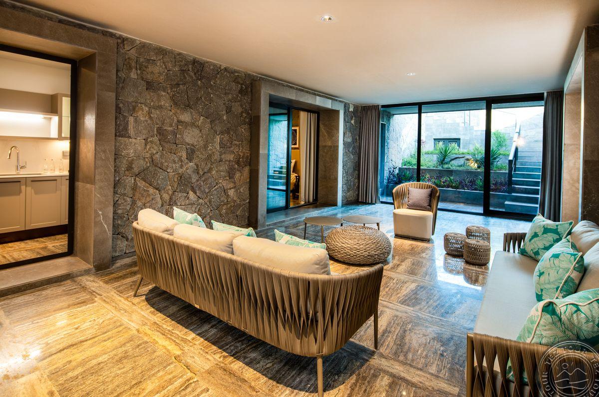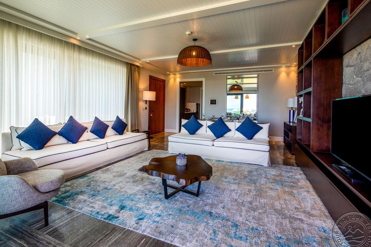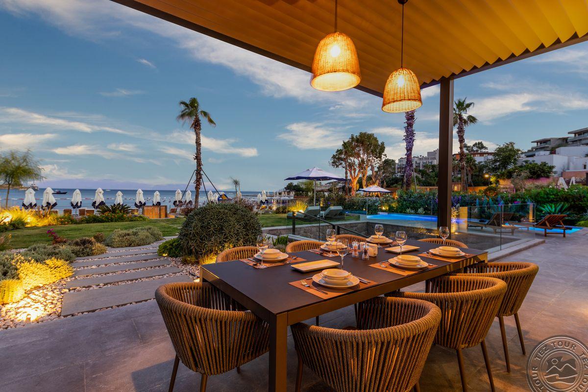 Beach Villa tipo vilos (šalia paplūdimio, su vaizdu į jūrą, svetainė su sofa-lova, 4 miegamieji (dvigulė ir viengulės lovos), virtuvė ir visi reikalingi virtuvės reikmenys, 6 tualetai, 5 vonios kambariai su dušu, privatus atviras baseinas ir sodas, liokajaus paslaugos, maks. 10+2 asm, 486 m2).