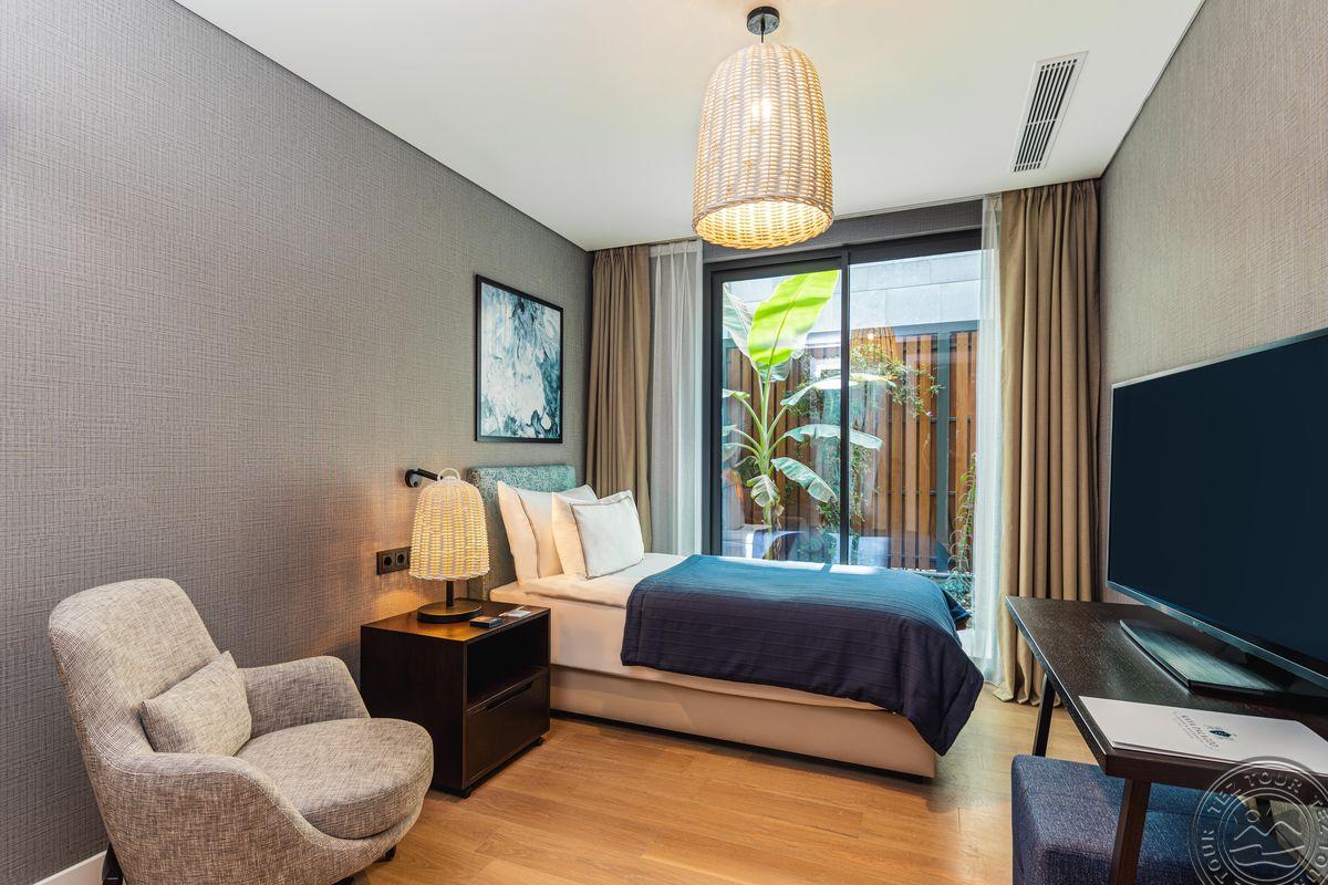 Residence 4+1 tipo numeriai (šalia paplūdimio, su vaizdu į jūrą, svetainė su sofa-lova, 4 miegamieji (dvigulė ir viengulės lovos), virtuvė ir visi reikalingi virtuvės reikmenys, 5 tualetai, 4 vonios kambariai su dušu, maks. 8 arba 7+2 asm., 217 m2).