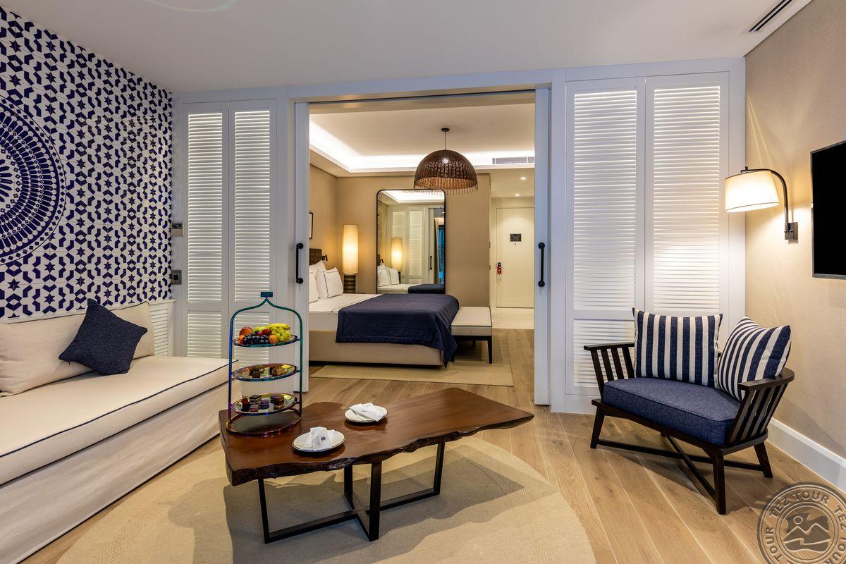 Swim Up Superior tipo numeriai (su vaizdu į apylinkes, svetainės ir miegamojo zonos atskirtos stumdomomis durimis, dvigulė arba 2 viengulės lovos, sofa-lova, balkonas su išėjimu į bendrą šildomą baseiną (baseinas šildomas priklausomai nuo oro sąlygų), maks. 3+1 asm., 45-55 m2).