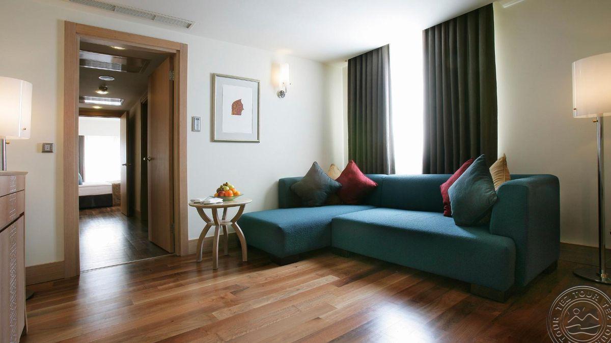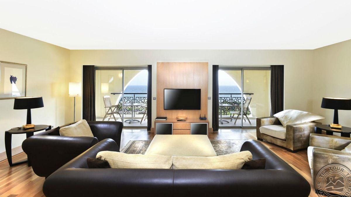 2 trijų kambarių selсuk suite sea view tipo numeris (svetainė su panoraminiu vaizdu į jūrą, 2 miegamieji atskirti durimis, 2 vonios kambariai, maks. 4 asm., 180 m2).