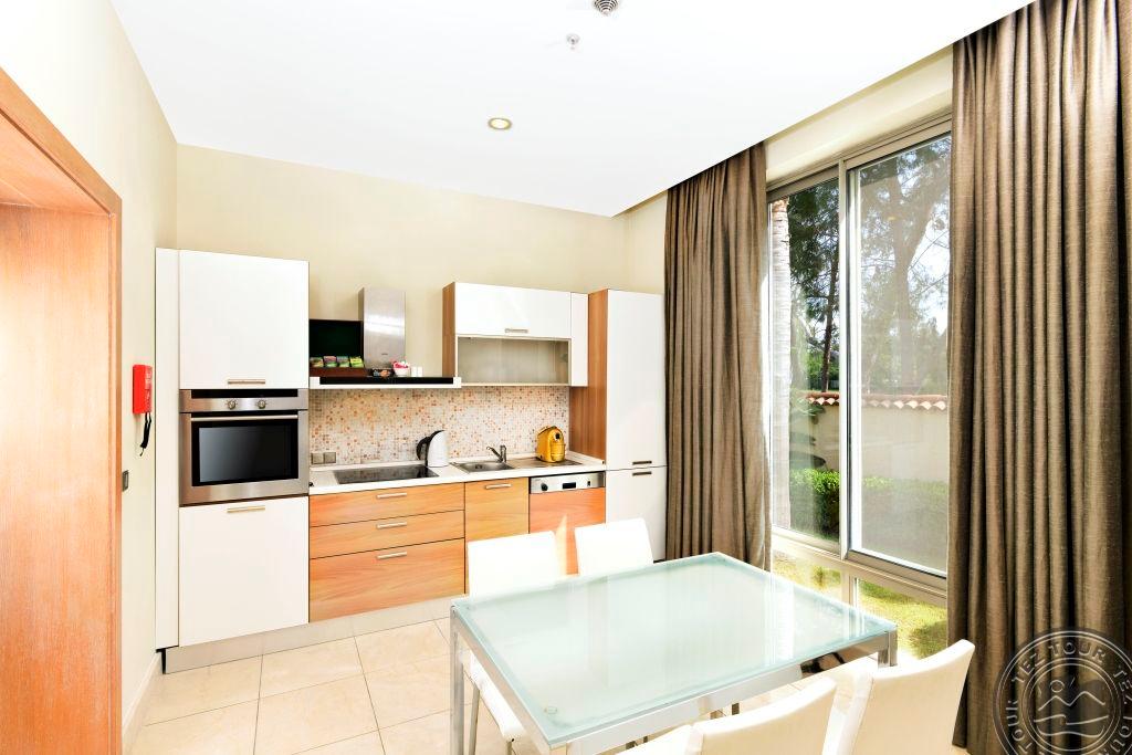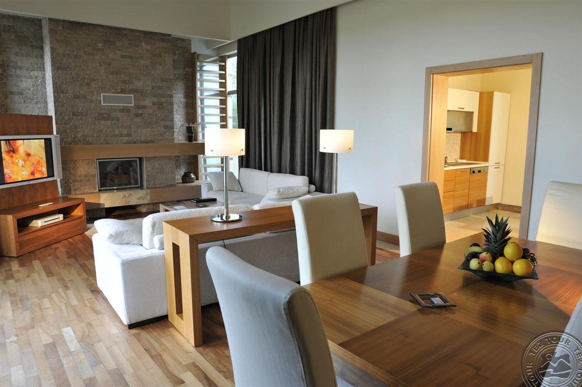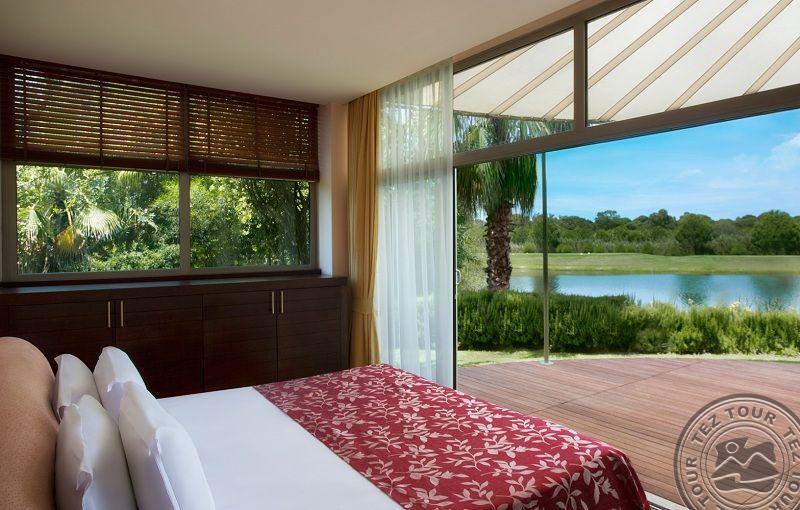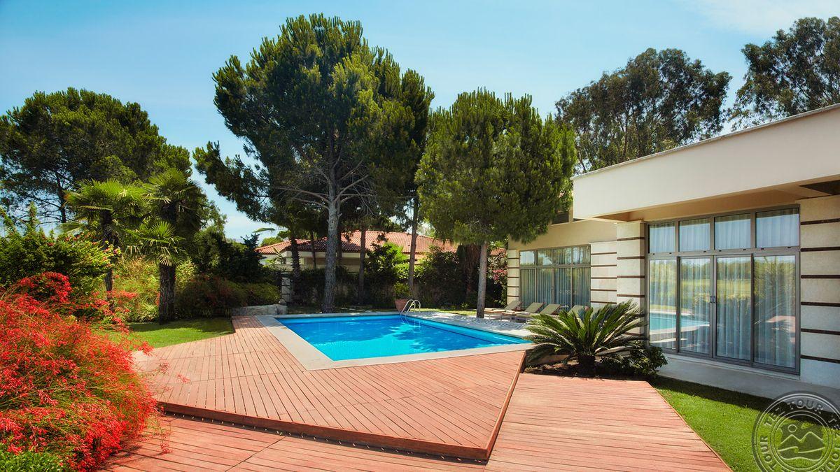 16 vieno aukšto royal golf villa tipo vilų (tiesioginis išėjimas prie baseino skirto 2-3 viloms, svetainė su virtuve ir valgomojo stalu, židinys, 2 miegamieji atskirti durimis, 2 vonios kambariai, sūkurinė vonia terasoje su gultais, maks. 4 asm., 120 m2);