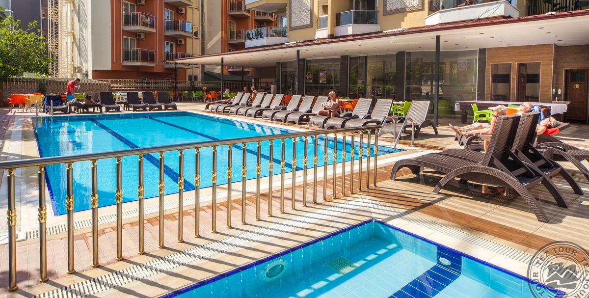 Labai maloniai aptarnavo jūsų darbuotoja Edita Špelverytė. Ji pasiūlė viešbutį, kuriuo buvome labai patenkintos Nuostabus viešbutis. Labai geroje vietoje. Šalia promenados, nuostabių fontanų ir vaikų žaidimo aikšelių. Šalia funikulierius, kuriuo galima užsikelti iki Alanijos pilies. Netoli viešbučio Archeologijos muziejus ir Damlato uola su stalaktitais. Pasivaikščiojant gali nueiti iki uosto. Nuostabus vaizdas pliaže su kalnais. Paplūdimyje ne smėlis, bet labai smulkūs akmenukai.