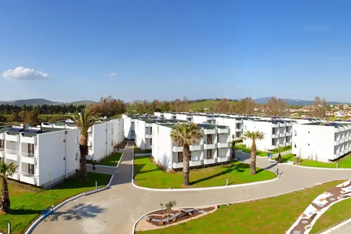 Apie 60 km iki Izmiro oro uosto, ant jūros kranto.