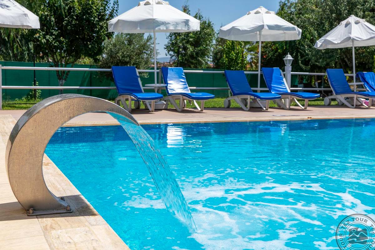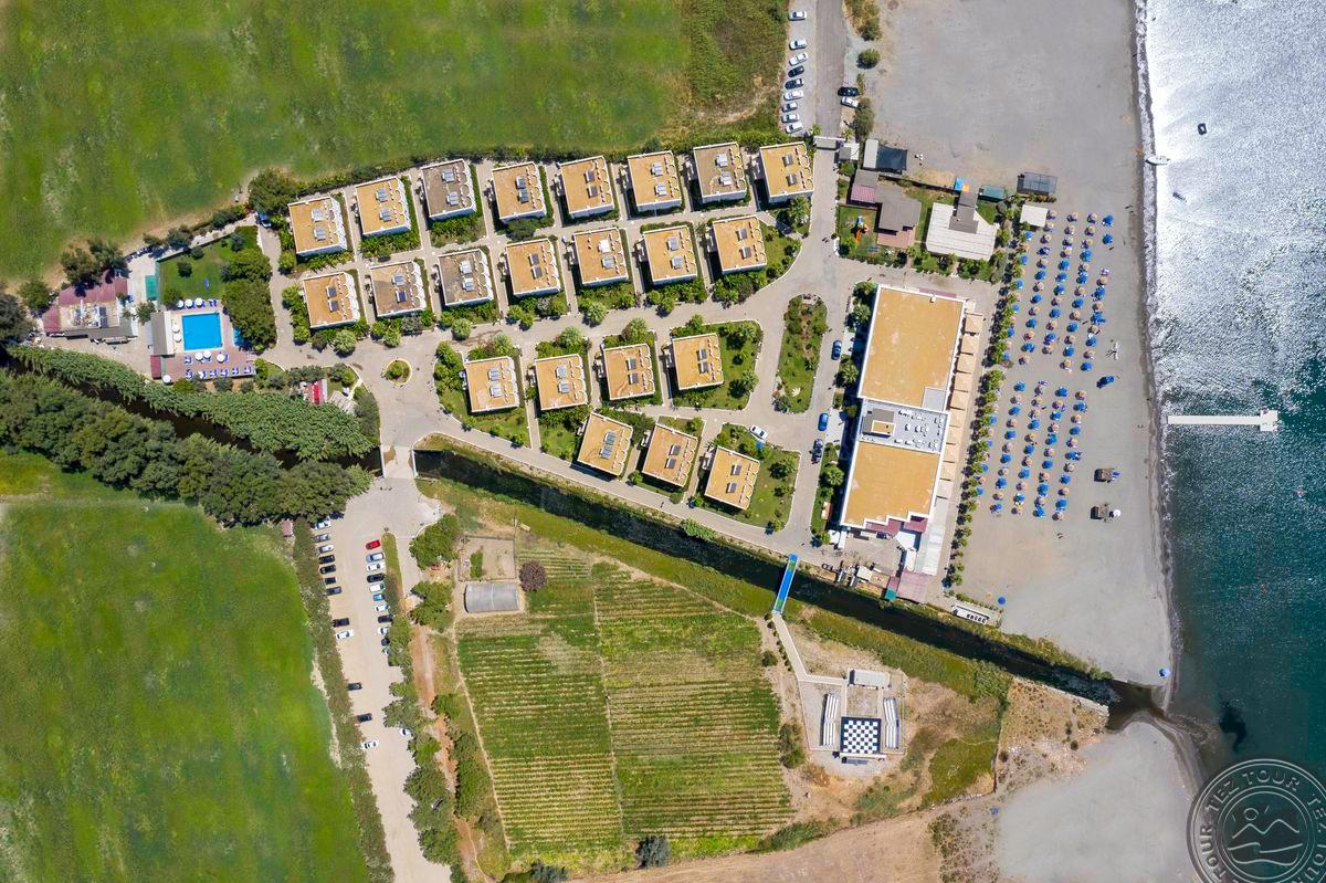 Svetingas viešbutis su daugybe patogumų, šalia vieno gražiausių Egėjo jūros paplūdimių. Šį ekologišką viešbutį supa didelis sodas. Viešbutis naudoja savo ekologiniame ūkyje užaugintus produktus.