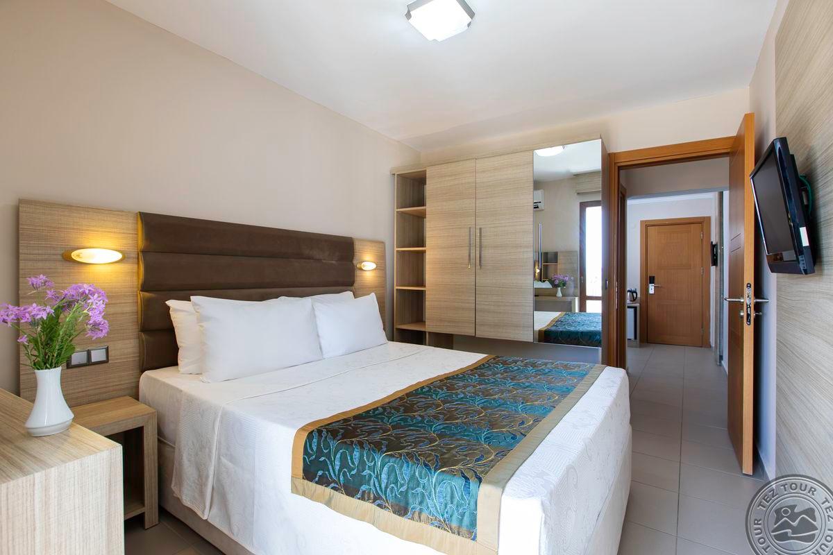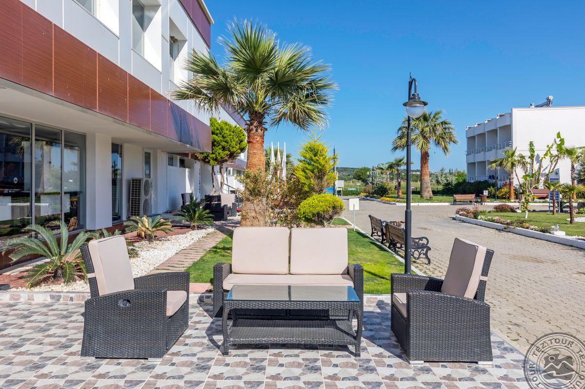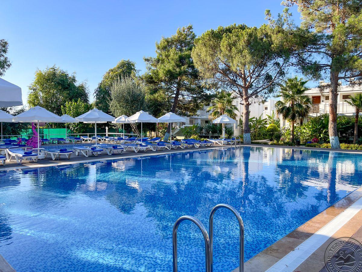 Rūpestinga vadybininkė Evelina. Ačiū Piusai: ypatingai rami vieta, turistai -vokiečiai ir turkai, puikus paplūdimys. Minusai: nuo oro uosto iki viešbučio 240 km (4 val kelio). Viešbučio aprašyme nurodyta 60 km iki Izmiro oro uosto, o skraidina į Bodrumą. Antrą kartą nevažiuočiau tik dėl per ilgo atstumo.