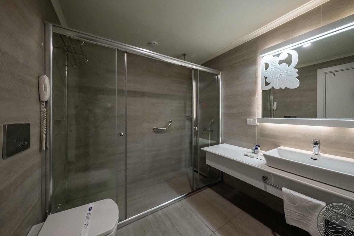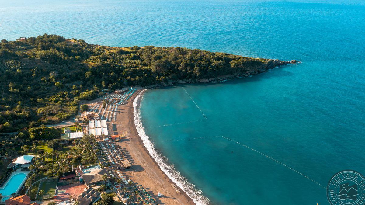 Viešbučio interjeras pasižymi šviesiomis spalvomis, suteikiančiomis erdvės ir jaukumo įspūdį. Teritorija yra nedidelė, tačiau turi kelis baseinus ir du vandens kalnelius. Tačiau žalumos čia nėra daug, todėl gamtos mėgėjams nepatiks. Standartinio kambario, pastato šone balkonas milžiniškas, iš jo atsiveria gražūs panoraminiai vaizdai. Depozitas už paplūdimio rankšluosčius yra 10 €, o mini baras kambaryje suteikia tik vandenį. Viešbučio transportas į paplūdimį važiuoja kas 10 minučių, jei norisi eiti atgal reikės lipti į kalną grįžtant. Kabanos arčiau jūros kainuoja 30 €, toliau – 20 €, paplūdimyje yra snakcbaras, kuris siūlo alų ir vyną. Papildomas patogumas – labai patogūs mediniai gultai su paminkštinimais čiužiniais, kurie suteikia komfortą prie baseino. 2 a la carte restoranai siūlo turkišką ir itališką virtuvę, ir vieną kartą per apsistojimą galima apsilankyti nemokamai. Viešbutyje taip pat yra vaikų žaidimų kambarys ir mini klubas. Paplūdimys tvarkingas, su taip pat patogiais gultais ir gražiais vaizdais aplink.