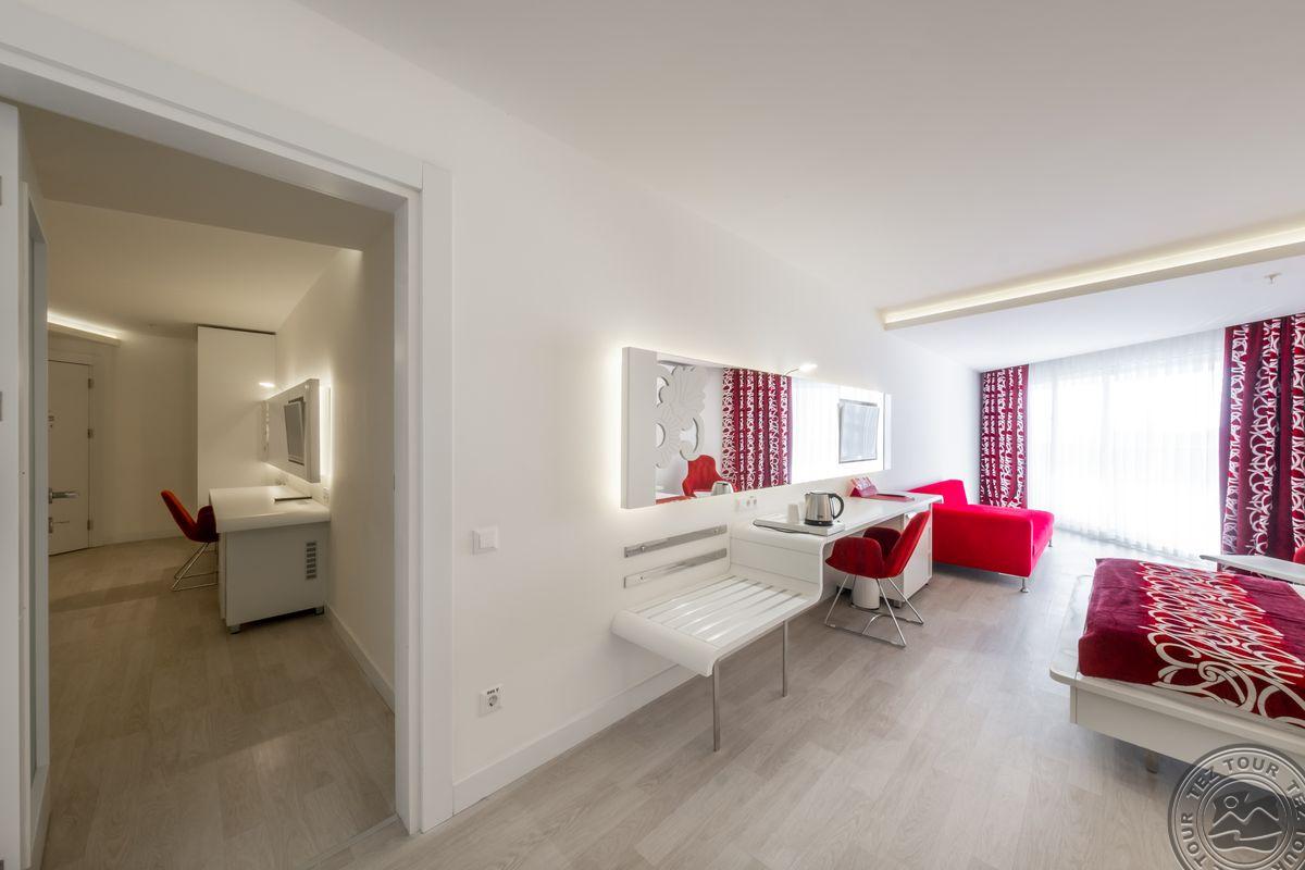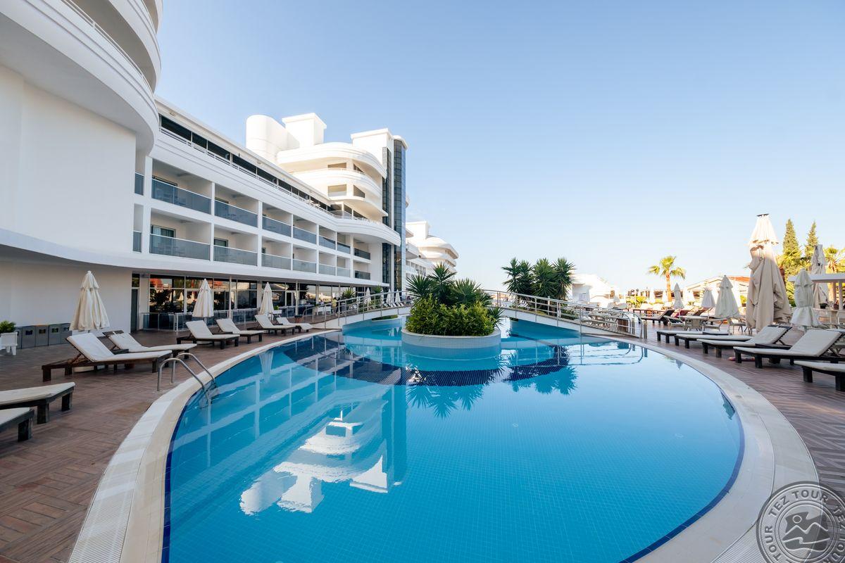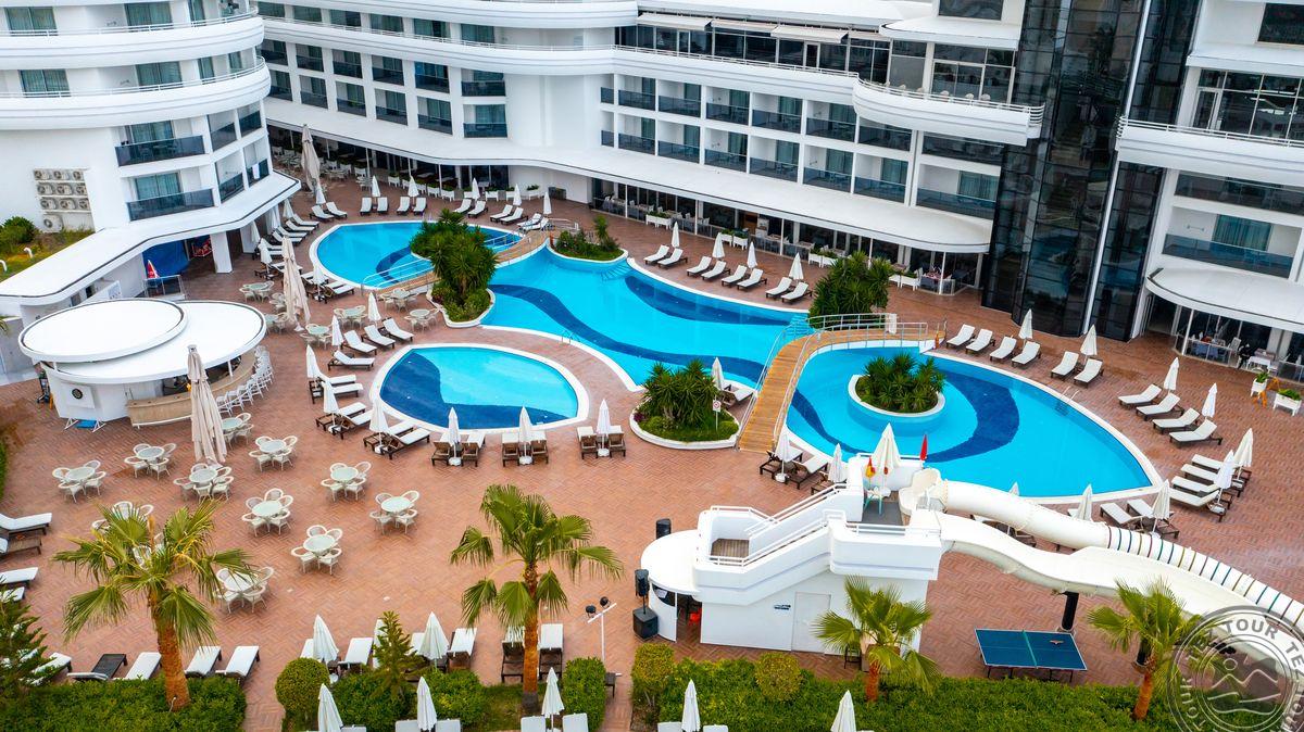 Viešbutis atidarytas 2016 m. Yra 2 a la carte restoranai (vieną kartą apsilankymas nemokamas), 3 barai, ant kalno, ~200 m iki paplūdimio, smėlio ir žvyro - skėčiai, gultai, rankšluosčiai (keitimas už papildomą mokestį), AI maitinimas, wifi nemokamas. Lokacija: ~90 km iki Antalijos oro uosto, ~35 km iki Alanijos miesto centro, ant kalno. Viso 256 kambariai, vietinis oro kondicionierius, balkonas, dušas, plaukų džiovintuvas, seifas (už papildomą mokestį), mini baras (tik vanduo). Economy tipo numeriai: Nuo standartinio numerio skiriasi vaizdu pro langą. Family tipo numeriai: du miegamieji. Šviesus, modernus viešbutis, ant kalvos, silpna animacija, tinka ramioms poroms.