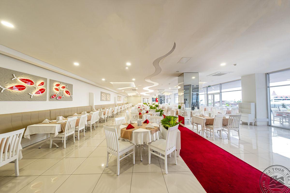 • a la carte restoranai: 2 (turkiškas, italų - pagal išankstinę rezervaciją, visos viešnagės metu viename restorane galima apsilankyti nemokamai)