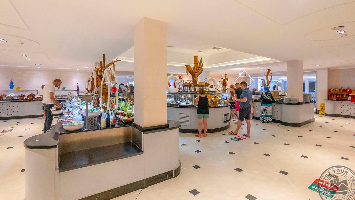Mini baras - papildomas tik vandeniu. A la carte (Žuvies, turkų, italų) mokami, 10 Eur/asm. Vaikų ir infinity baseinai šildomi. Paplūdimys beveik smėlis, nedidelis, neplatus. UAI importiniai paprastesni. Poilsiautojai - lenkai, anglai. Viešbutis turi didelį vandens parką, skirtas visiškai šeimoms, prie pagrindinio baseino dienos metu vyko aktyvi animacija. Kambariai tvarkingi, Neutralių spalvų, turi medžio elementų.