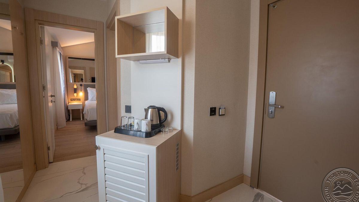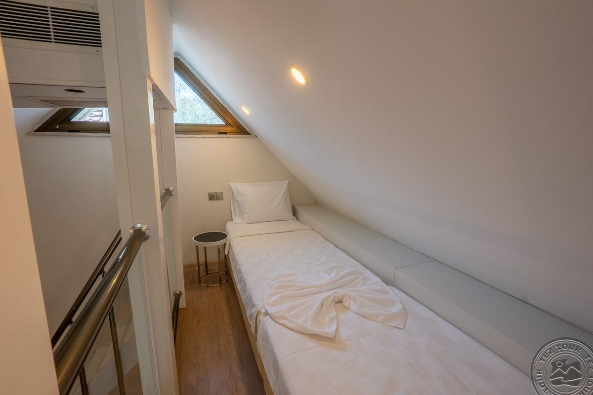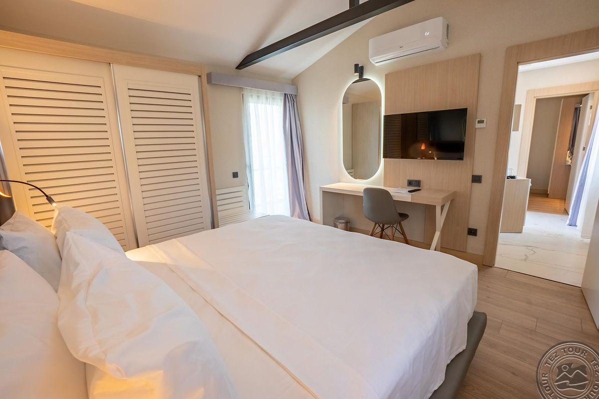 7 dviejų aukštų  family suit tipo numeriai (su vaizdu į jūrą, kai kurie numeriai be balkono, 2 miegamieji neatskirti durimis, maks. 4+2 asm., 45 m2).