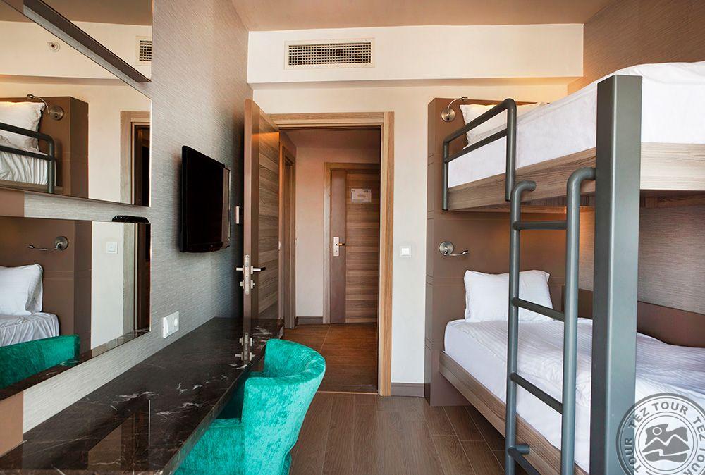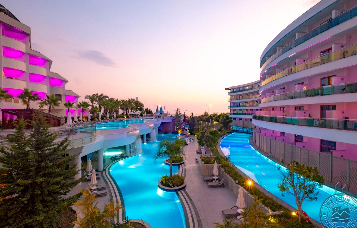 5* Long Beach Harmony Hotel modernus ir pasaulinio lygio aptarnavimo viešbutis, įsikūręs ant Viduržemio jūros kranto. Viešbutis žavi ne tik savo šiuolaikišku, moderniu dizainu, bet ir įvairiausių pramogų asortimentu: didelis vandens parkas suaugusiems, 2 dideli vandens parkai vaikams, atrakcionų parkas, animacinė programa, turkiška pirtis, sauna, atpalaidojančios SPA centro paslaugos, o vakare viešbučio svečių laukia šokiai diskotekojes. Taip pat, svečiai gali mėgautis pagrindime restoranuose ruošiamu unikaliu osmanų, Viduržemio jūros regiono, italų ir kinų virtuvių valgiais. A’la Carte „Hunkar“ restorane tiekiami tradiciniai turkiški patiekalai, o vyninėje „Wine House“ viešbučio svečiai gali paragauti įvairių rūšių vynų. Rekomenduojamas aktyviom šeimos atostogom.