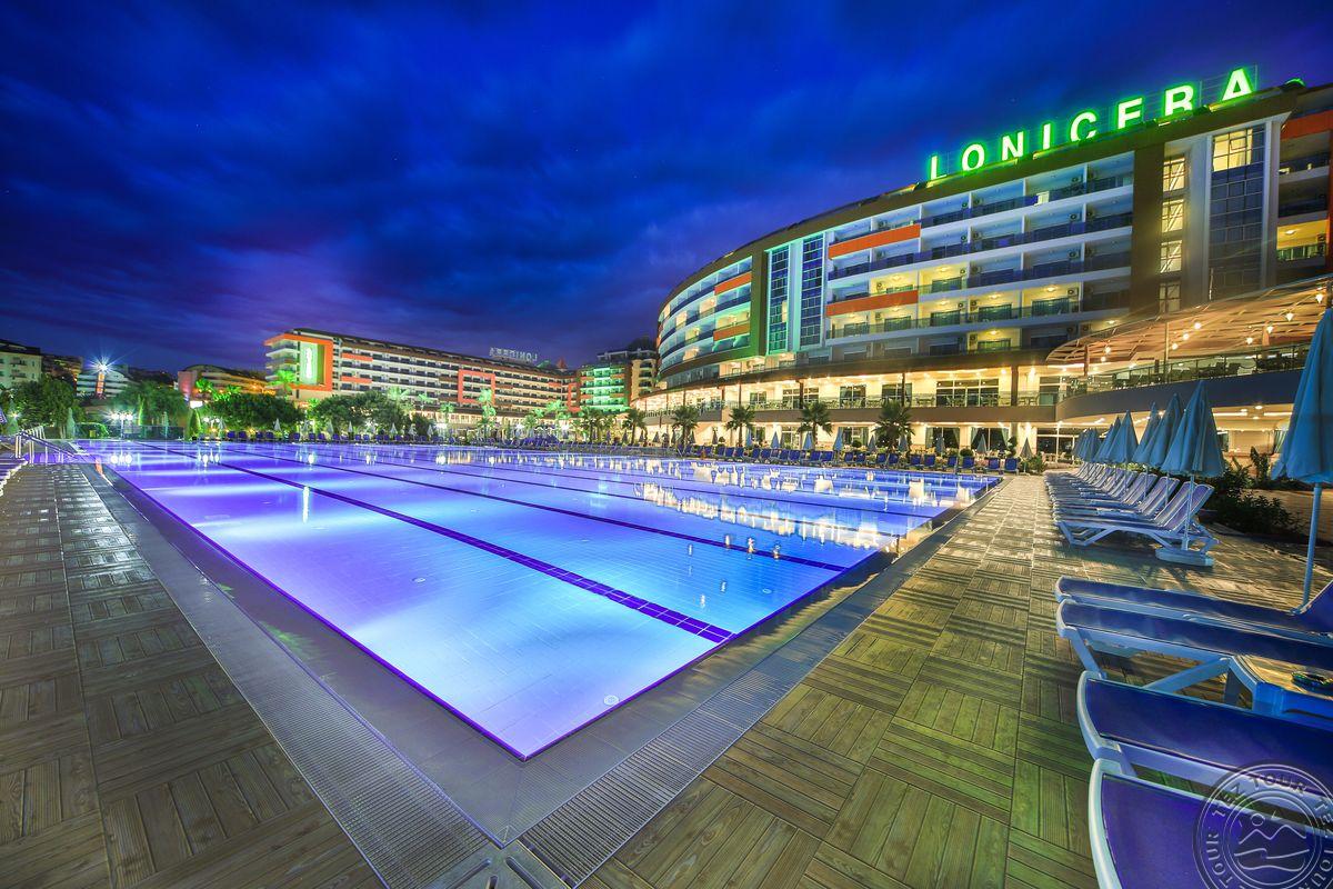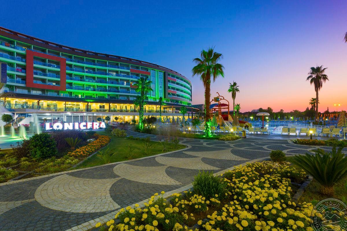 Dabar visi Lonicera viešbučiai naudojasi bendra teritorija, tiek World, tiek resort tame tarpe ir paplūdimiu. REIKIA ATKREIPTI DĖMESĮ: Kokį kambarį užsakote, nes dažniausiai rašo , kad gyvenate resort, bet kambarys world pastate. Tai čia atsargiai. Didelę teritoriją turintis viešbutis, vos keli žingsniai iki jūros, kuris orientuojasi į poilsį su vaikais. Didelis vandens pramogų parkas. Daugiakalbis personalas. Skirtas įvairaus amžiaus turistams, šeimoms su vaikais. Nuostabus smėlio paplūdimys. Labai geras kainos ir kokybės santykis. Taip pat viešbutyje yra: vidaus baseinas, 4 lauko baseinai, 1 pramogų baseinas su 19 vandens čiuožyklų, erdvus sodas ir nedidelis zoologijos sodas.Viešbutyje „Lonicera World“ veikia nemokamas belaidis internetas. Labai daug dėmesio skiriama vaikams! Hamame, saunoje ir garų pirtyje galėsite visiškai atsipalaiduoti. Viešbutyje įrengta treniruoklių salė. World yra arčiau jūros, bet prastesnis negu resort. Premium skirtas suaugusiems, butique stiliaus viešbutukas. World turi 2 korpusus, bet vadybininkas negali paskirti, kur jūs gyvensite, tik parašyti pastabą viešbučiui dėl geresnio kambario ar korpuso.