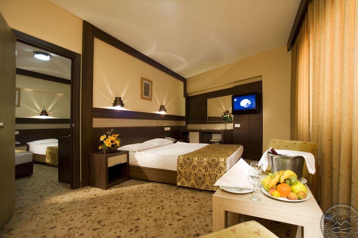 Nėra šildomo baseino ir akvaparkas nešildomas. Galima naudotis teritorija, bet valgyt savo restoranuose. Mini bare tik vanduo. Labai didelis akvaparkas, daug žmonių. Yra neįgaliųjų nuleidimas į baseiną. 5 žv., geri, gražūs tvarkingi kambariai.