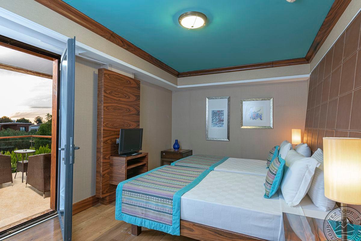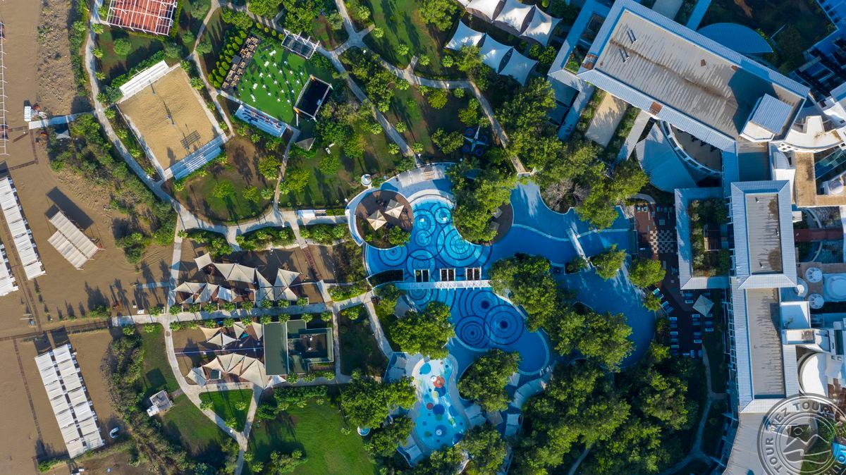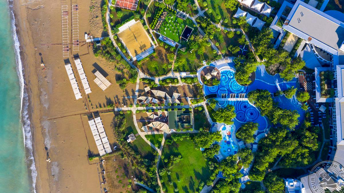 Viešbutį sudaro vienas 4-ių aukštų pastatas ir šešiolika 2-jų aukštų Aspendos vilų (80% numerių su daliniu arba tiesioginiu vaizdu į jūrą).