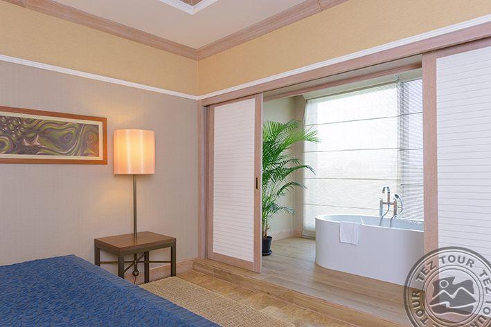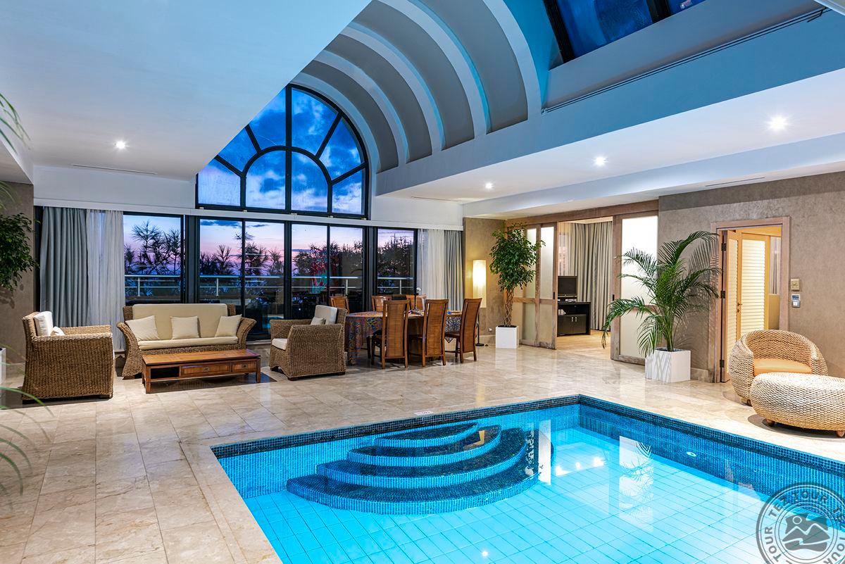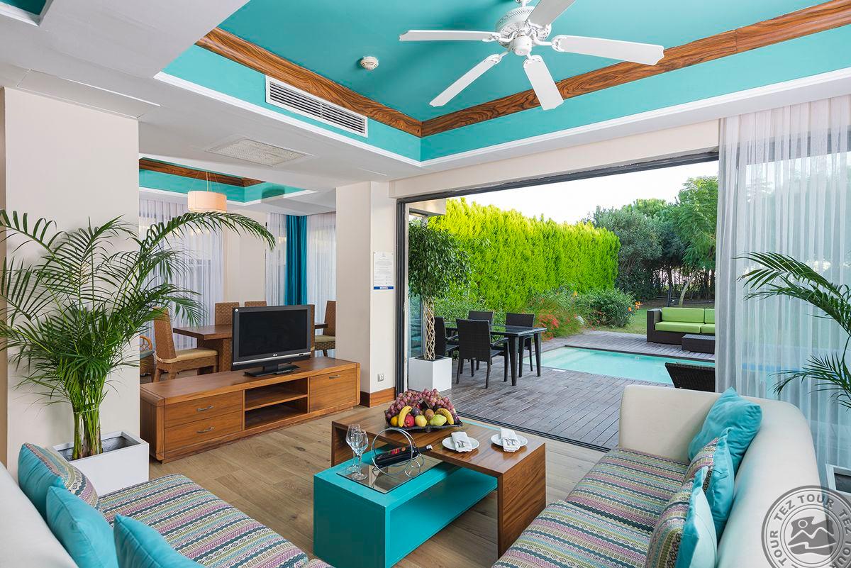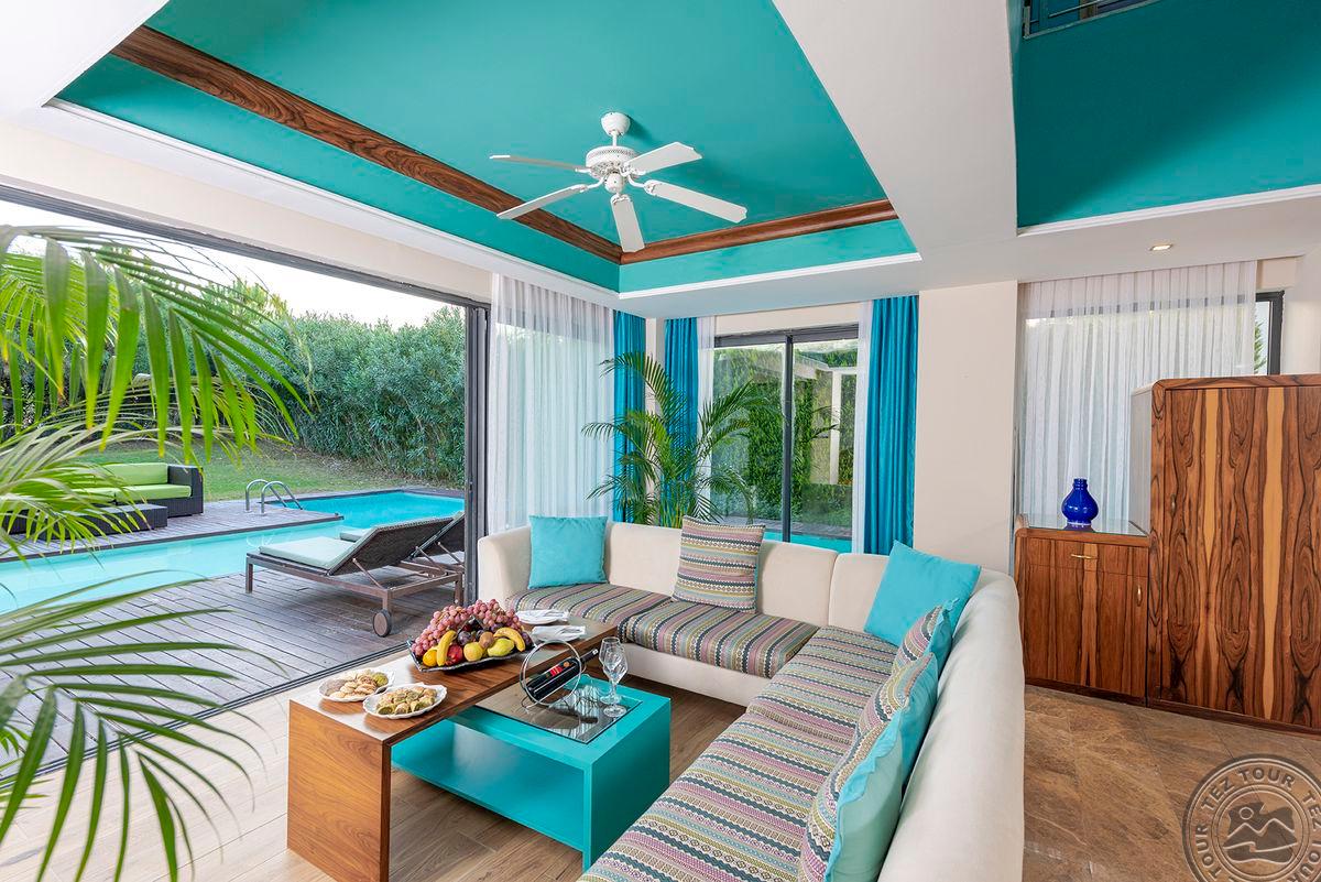 Pool Suite tipo numeriai (svetainė, 2 miegamieji, 2 vonios kambariai, su tiesioginiu išėjimu prie baseino, maks. 4+1 asm., 77-87 m2).