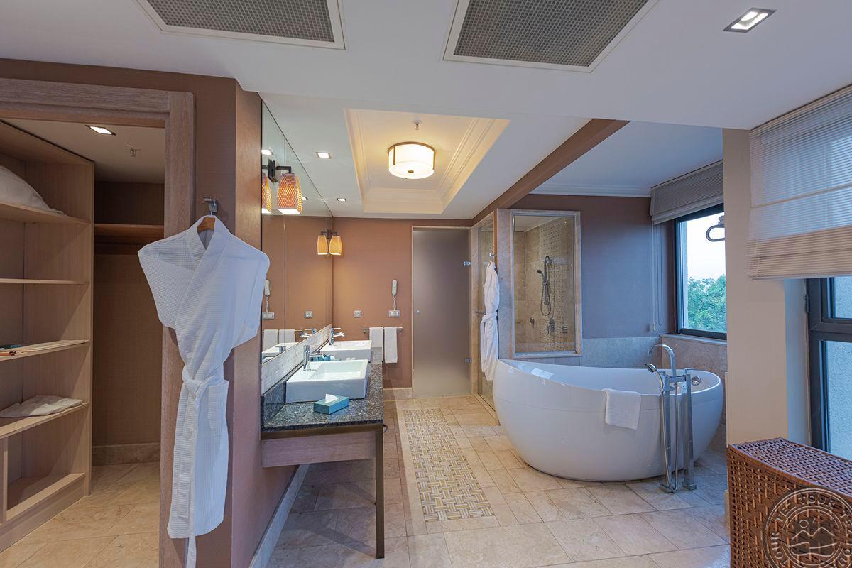 King Suite tipo numeriai (uždaras baseinas, svetainė, darbo kambarys, minkštų baldų komplektas, valgomojo stalas, 2 miegamieji, sūkurinė vonia, 2 vonios kambariai, virtuvė, drabužinė, didelis balkonas, maks. 6 asm., 190-200 m2).