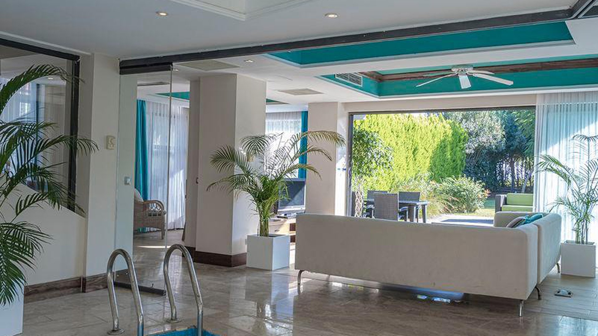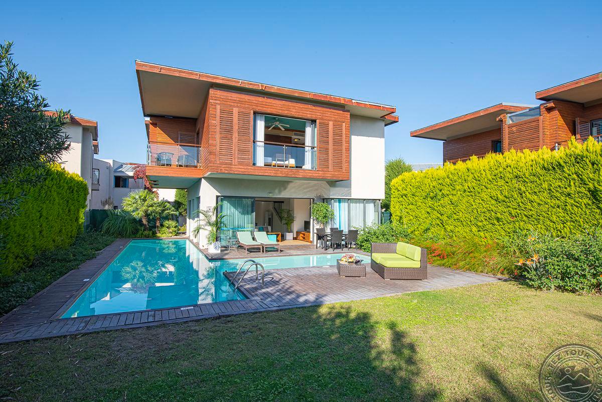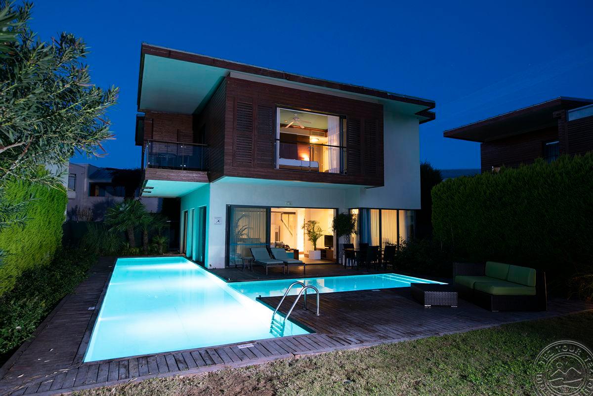 Villas tipo vilos (2-jų aukštų vilos su atviru ir uždaru baseinais; 2-me aukšte: 2 miegamieji, sauna, vonios kambarys, balkonas; 1-me aukšte: svetainė - minkštų baldų komplektas, valgomojo stalas, darbo stalas; uždaras baseinas su sūkurine vonia, miegamasis - viengulė lova, vonios kambarys; terasa su sodu - sodo baldai pavėsinėje ir atviras baseinas (terasa aptverta gyvatvore), maks. 6 asm., 190-200 m2).