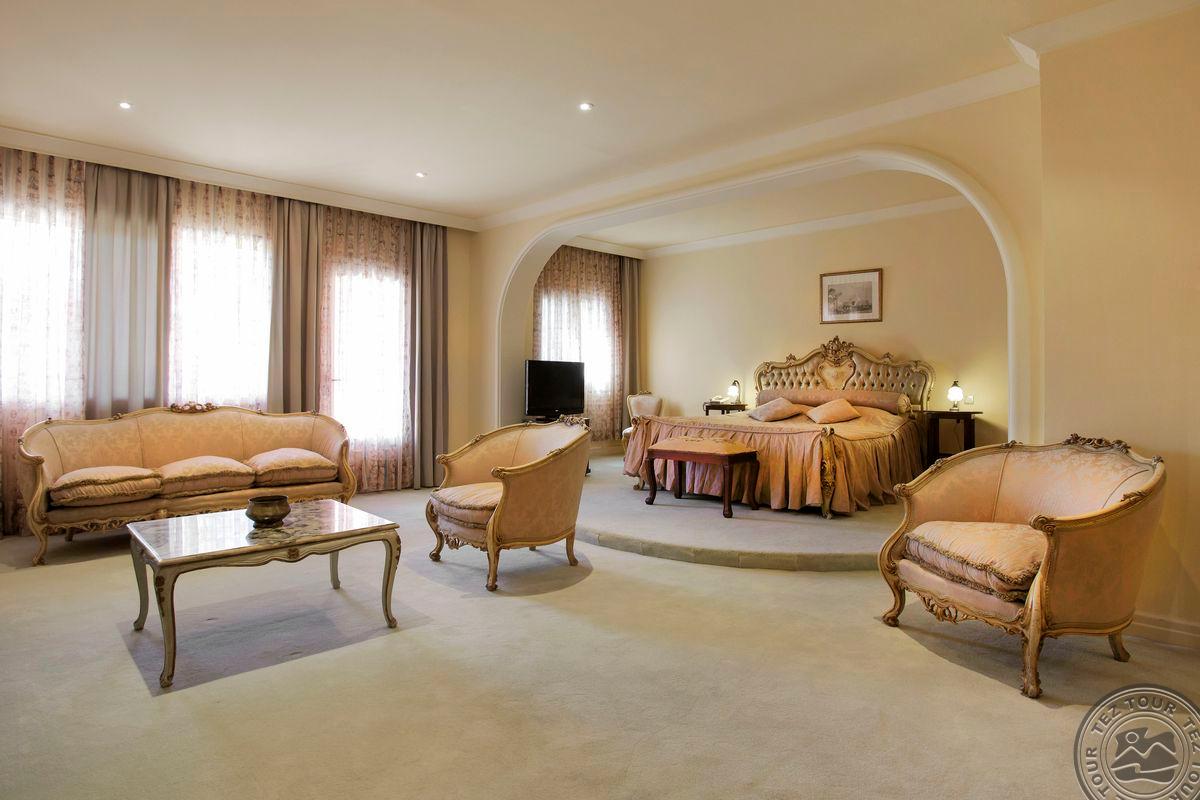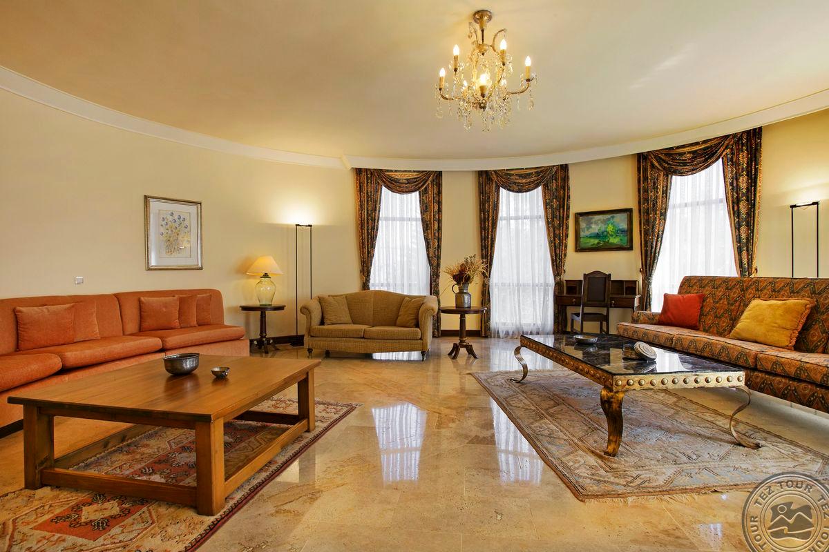 1 trijų kambarių Presidential suite (3 kambarių numeris: svetainė su virtuve, 2 miegamieji kambariai atskirti durimis, 2 vonios kambariai su sūkurine vonia, maks. 4+2 asm., 320 kv.m, VIP-servisas).